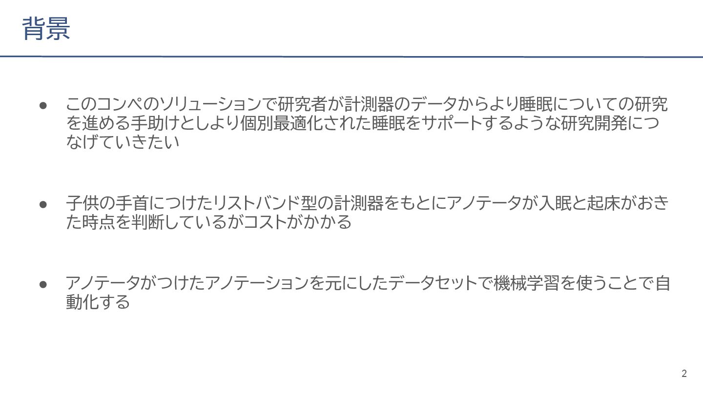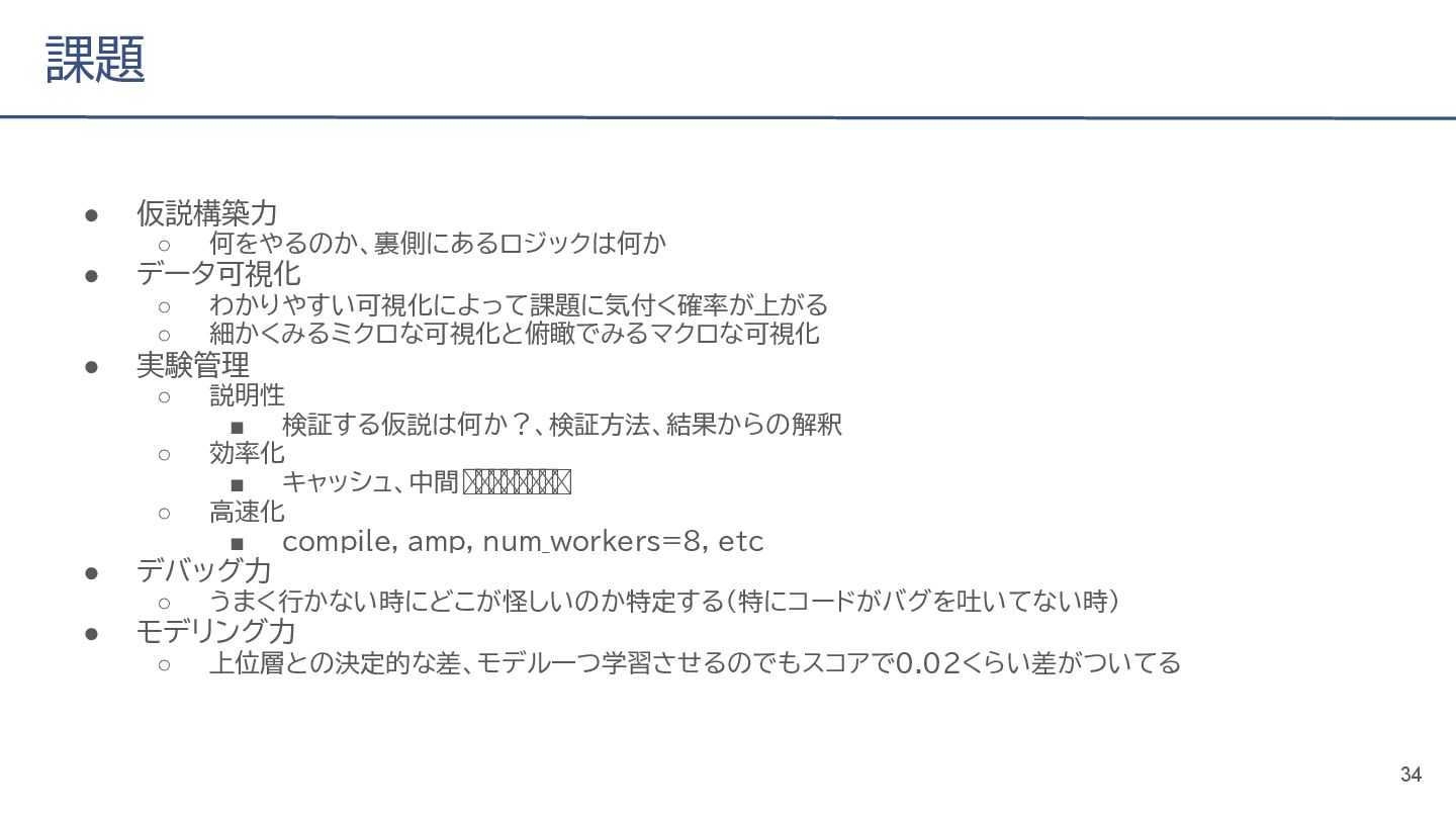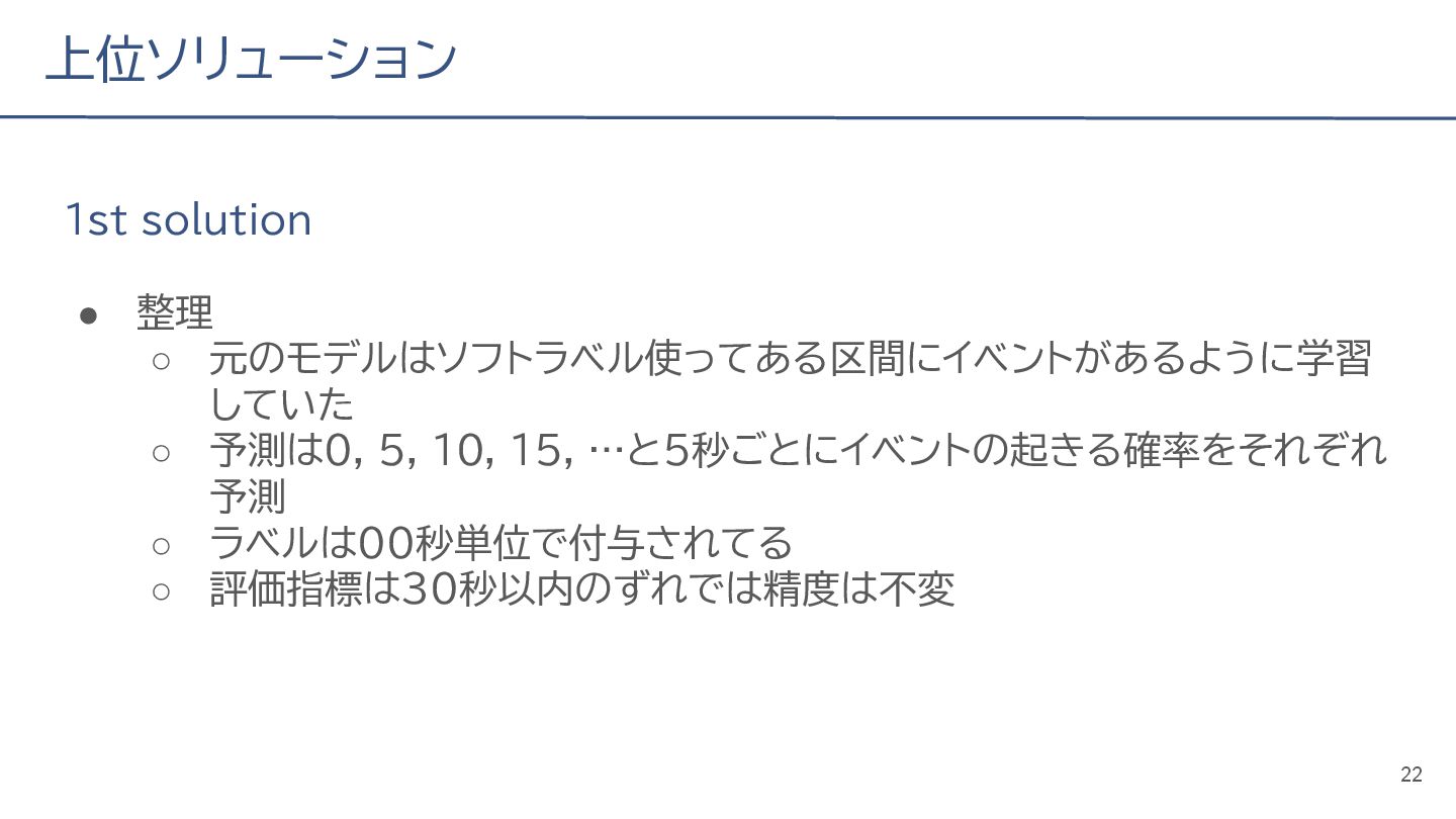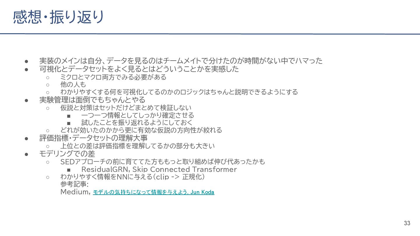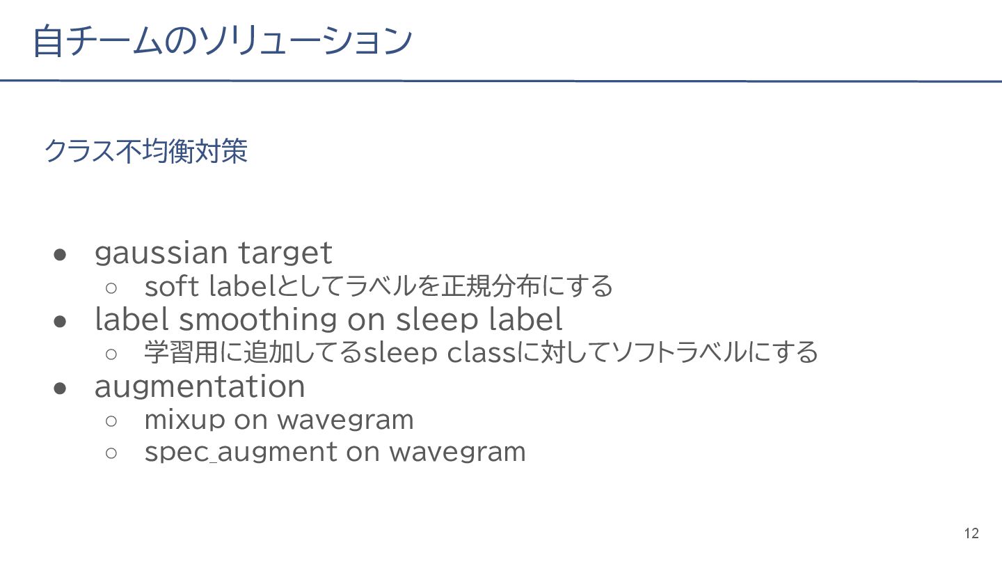(cv: 0.7510) - public: 0.728 • Add a process to decay the target every epoch (cv: 0.7699, +19pt) • Add a periodicity filter to the output (cv: 0.7807, +11pt) • Add a periodicity flag to the input as well (cv: 0.7870, +6pt) - public: 0.739 • batch_size: 16 → 4, hidden_size: 128 → 64, num_layers: 2 → 8 (cv: 0.7985, +11pt) - public: 0.755 • Normalize the score in the submission file by the daily score sum (cv: 0.8044, +6pt) • Remove month and day from the input (cv: 0.8117, +7pt) • Trim the edges of the chunk by 30 minutes on both sides (cv: 0.8142, +4pt) - public: 0.765 • Modify to concatenate the minute features to the final layer (cv: 0.8206, +6pt) - public: 0.768 19
