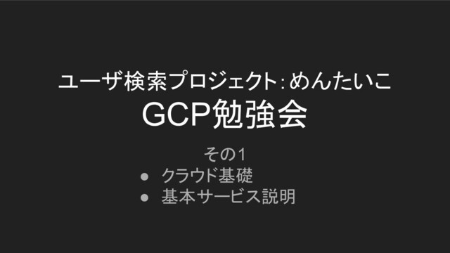その1 • クラウド基礎 • 基本サービス説明 ユーザ検索プロジェクト:めんたいこ GCP勉強会