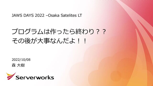 https://jawsugosaka.doorkeeper.jp/events/142046 LTer 1. Yamahara 2. Otani 3. Ikeda 4. Yamashita 5. Hayashida 6. Mori 7. Ito 8. Kazenotani 9. Omuro 10. hamaaaan