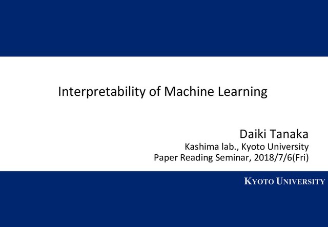 the process of giving explanations to humans. n There is no clear definition, but it is l To explain not only output of models (what) but also the reason (why). l To interpret the model by using some method or criteria.