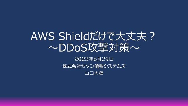 AWS Shieldだけで大丈夫? ~DDoS攻撃対策~ 2023年6月29日 株式会社セゾン情報システムズ 山口大輝