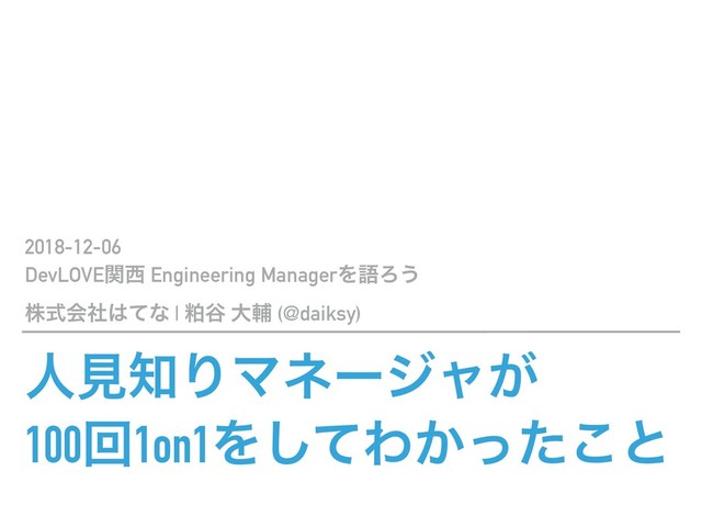 ਓݟΓϚωʔδϟ͕ 100ճ1on1Λͯ͠Θ͔ͬͨ͜ͱ 2018-12-06 DevLOVEؔ Engineering ManagerΛޠΖ͏ גࣜձࣾͯͳ | പ୩ େี