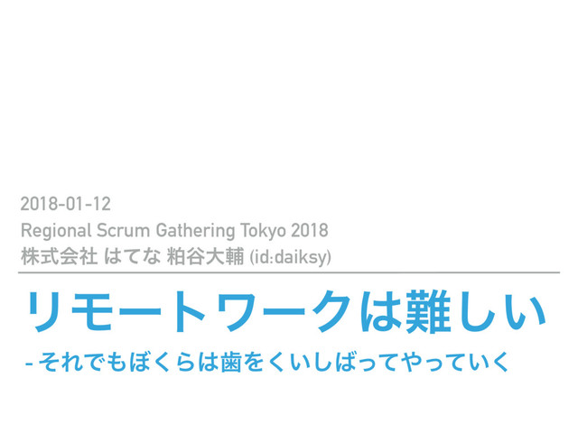ϦϞʔτϫʔΫ͍͠ - ͦΕͰ΅͘ΒࣃΛ͍͍ͬͯͬͯ͘͘͠ 2018-01-12 Regional Scrum Gathering Tokyo 2018 גࣜձࣾ