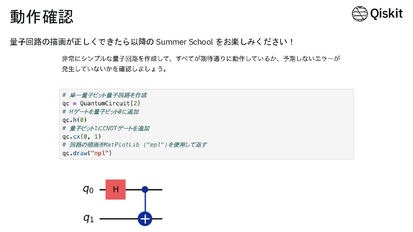 動作確認 量子回路の描画が正しくできたら以降の Summer School をお楽しみください!