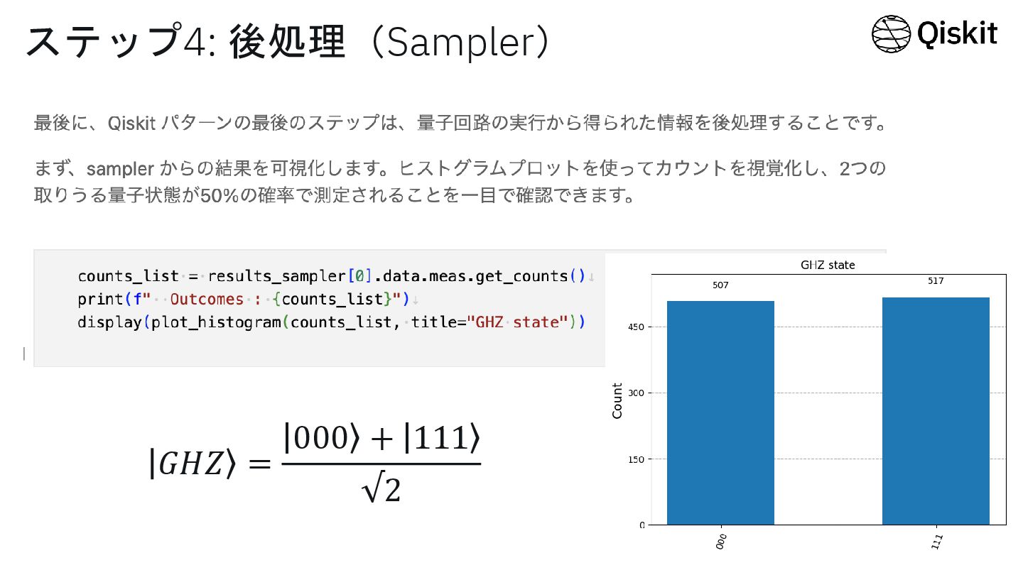 ステップ4: 後処理(Sampler) 𝐺𝐻𝑍 = 000 + 111 √2