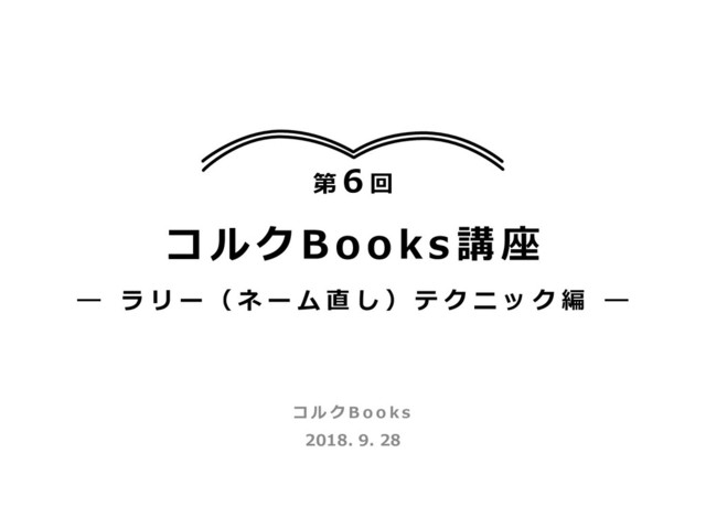 s講 座 ― ラ リ ー ( ネ ー ム 直 し ) テ ク ニ ッ ク 編 ― コ ル ク B o o k s 2018. 9. 28