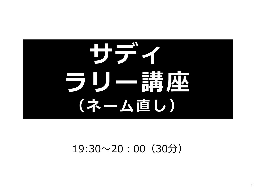 7 19:30〜20:00(30分) サディ ラリー講座 ( ネ ー ム 直 し
