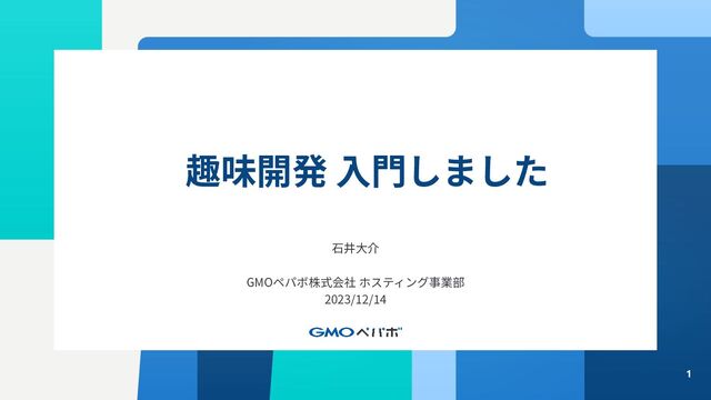 1 趣味開発 ⼊⾨しました ⽯井⼤介 GMOペパボ株式会社 ホスティング事業部 2023/12/14