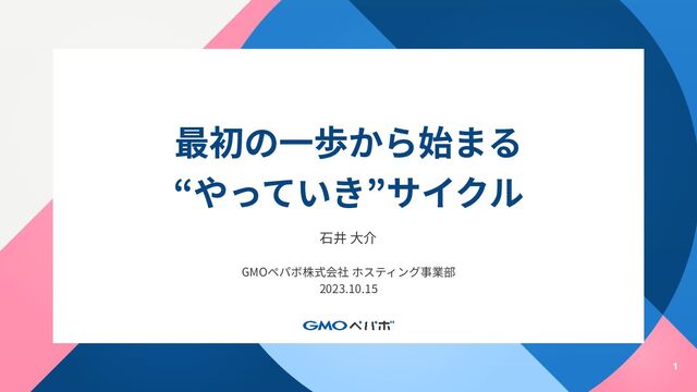 1 最初の⼀歩から始まる “やっていき”サイクル ⽯井 ⼤介 GMOペパボ株式会社 ホスティング事業部 2023.10.15