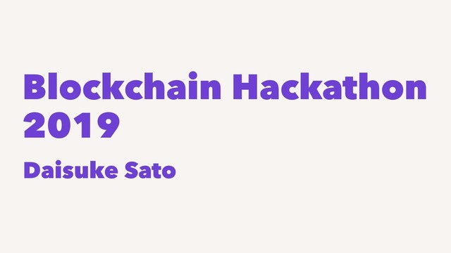 Blockchain Hackathon 2019 Daisuke Sato