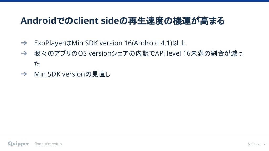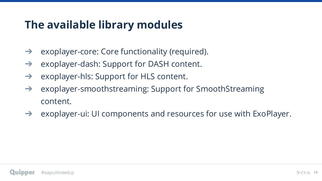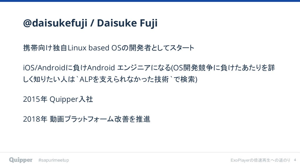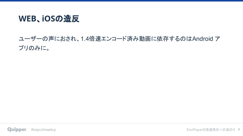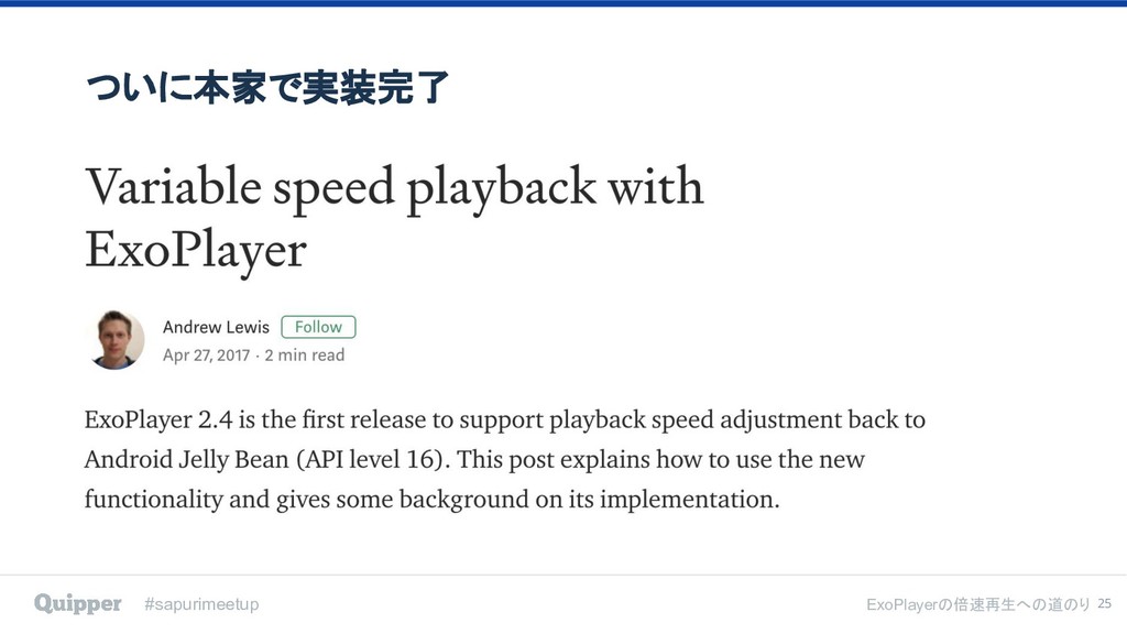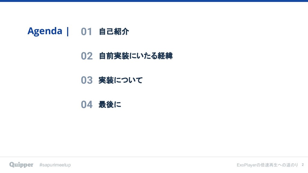 2019年2月8日にTECH PLAY Shibuya で行われた [ スタディサプリ/Quipper Product Meetup #2 〜ExoPlayerの倍速再生への道のり〜 ] のイベント登壇資料です。