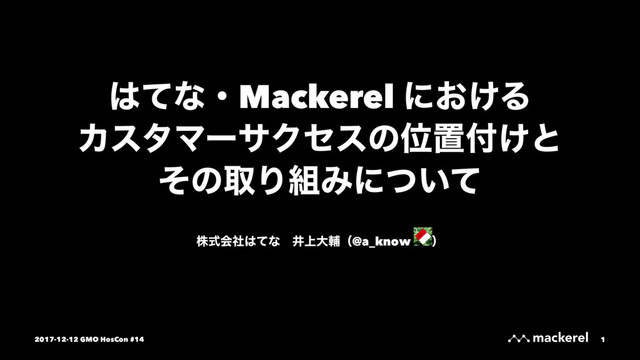 ·ͣɺͯͳɾMackerel ʹ͓͚ΔʰΧελϚʔαΫηεʱ ͷҐஔ͚ʹ͍ͭͯ • ͦͦɺࢲͷ৬छʰCREʱʹ͍ͭͯ • ʰCREʱͱ͍͏৬छʹ͍ͭͯ͝ଘͷํʁ 2017-12-12 GMO HosCon