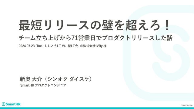 CONFIDENTIAL ࠷ϦϦʔεͷนΛ͑Ζʂ νʔϜ্ཱ͔ͪ͛ΒӦۀͰϓϩμΫτϦϦʔεͨ͠ 5VF͠͠ͱ͏-5น-5ձ!גࣜձࣾ*73Z༷ ৽ԞେհʢγϯΦΫμΠεέʣ 4NBSU)3ϓϩμΫτΤϯδχΞ