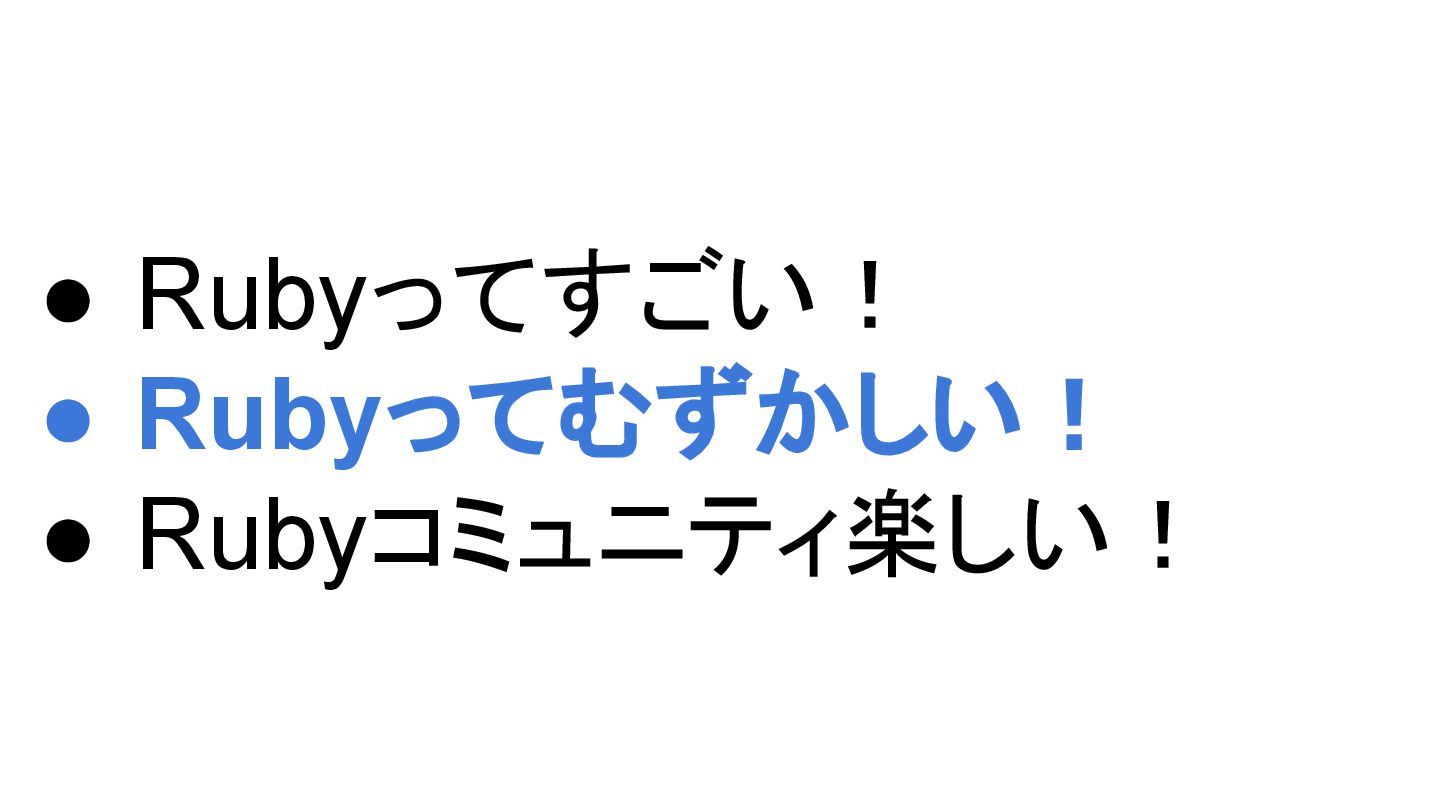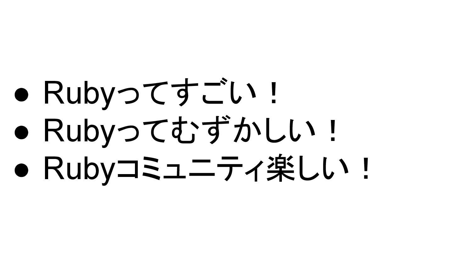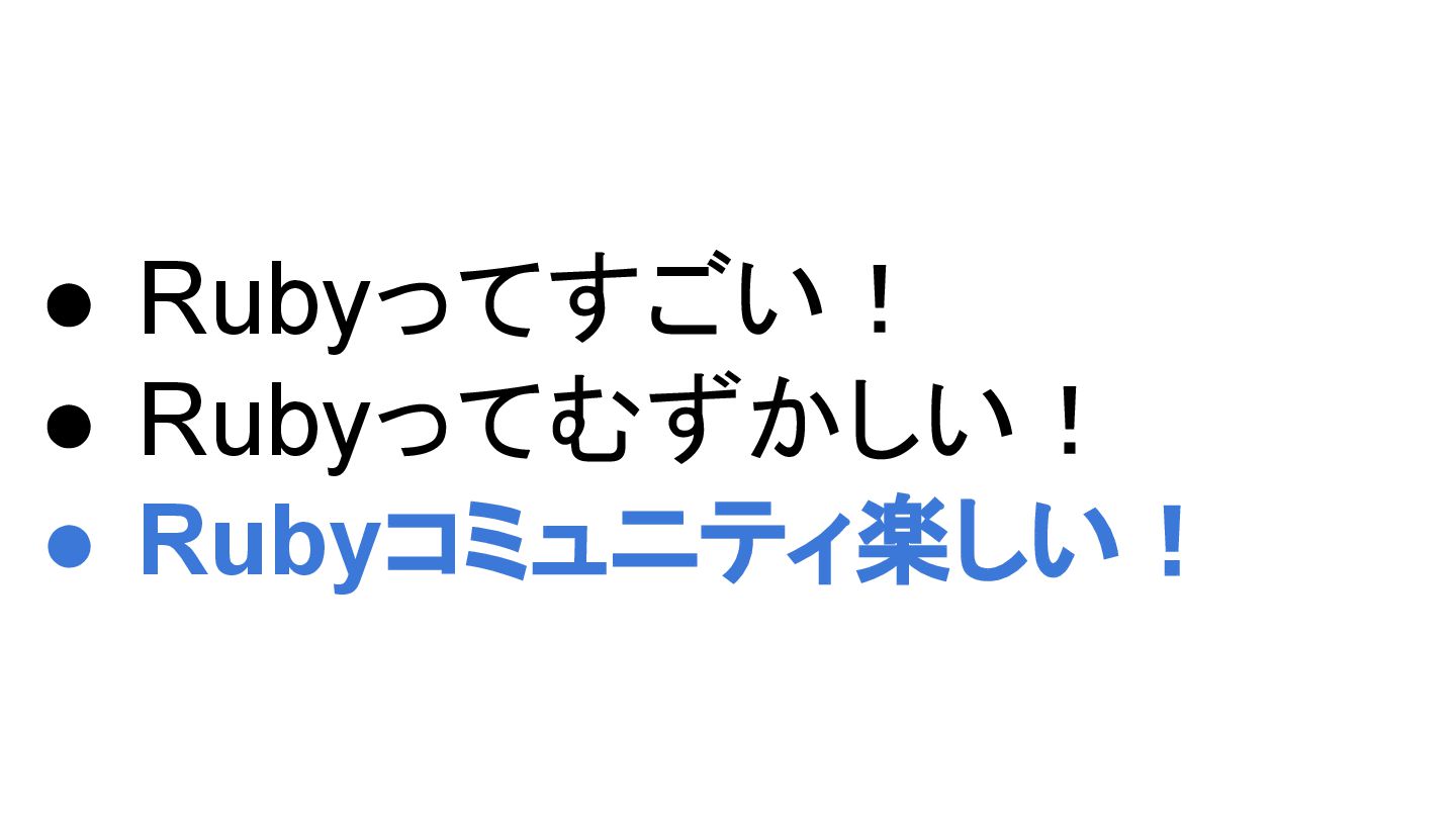 • Rubyってすごい! • Rubyってむずかしい! • Rubyコミュニティ楽しい!