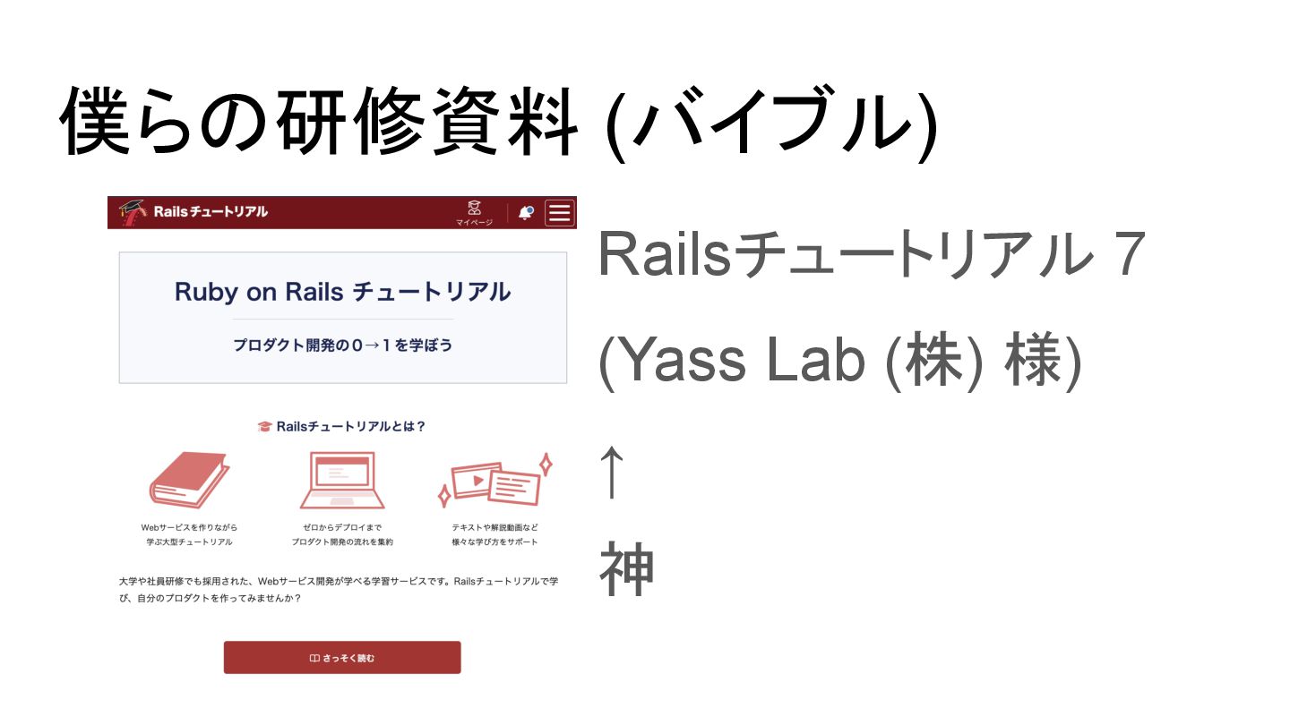 僕らの研修資料 (バイブル) Railsチュートリアル 7 (Yass Lab (株) 様) ↑ 神