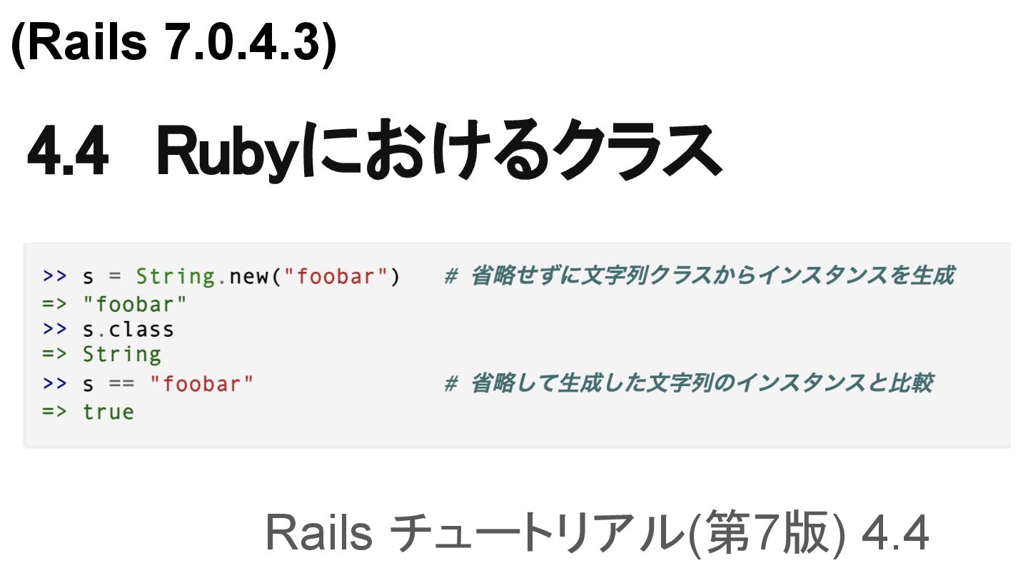(Rails 7.0.4.3) Rails チュートリアル(第7版) 4.4 4.4 Rubyにおけるクラス