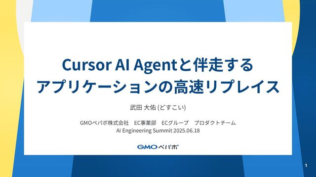 AI Engineering Summit 公募LT ”Cursor AI Agentと伴走する、アプリケーションの高速リプレイス” の発表スライドです。