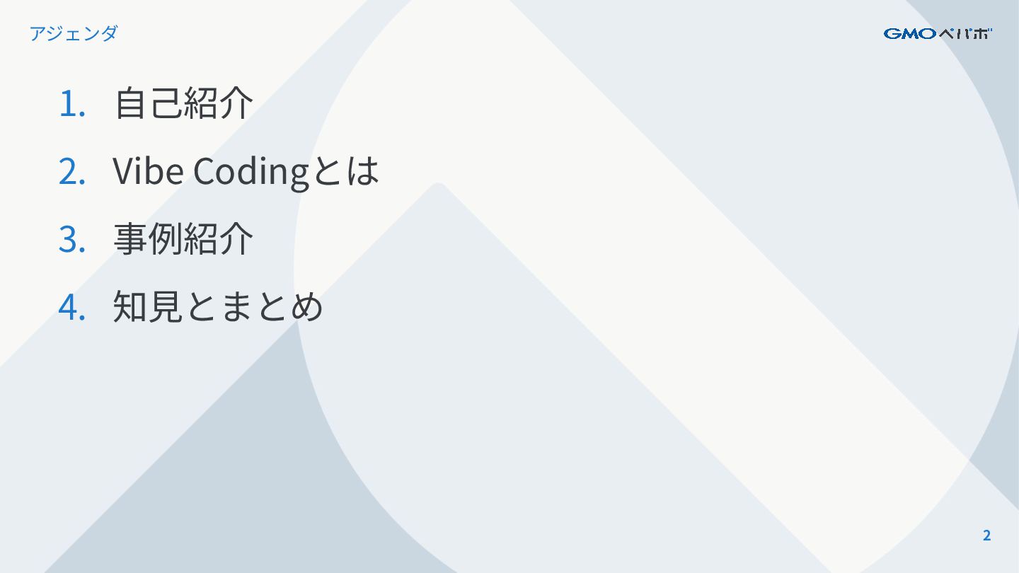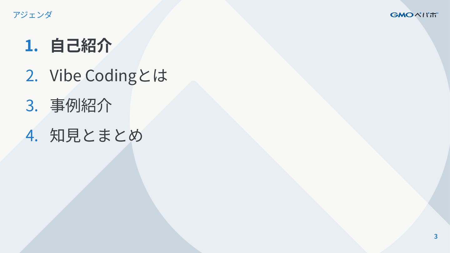 2 アジェンダ 1. ⾃⼰紹介 2. Vibe Codingとは 3. 事例紹介 4.