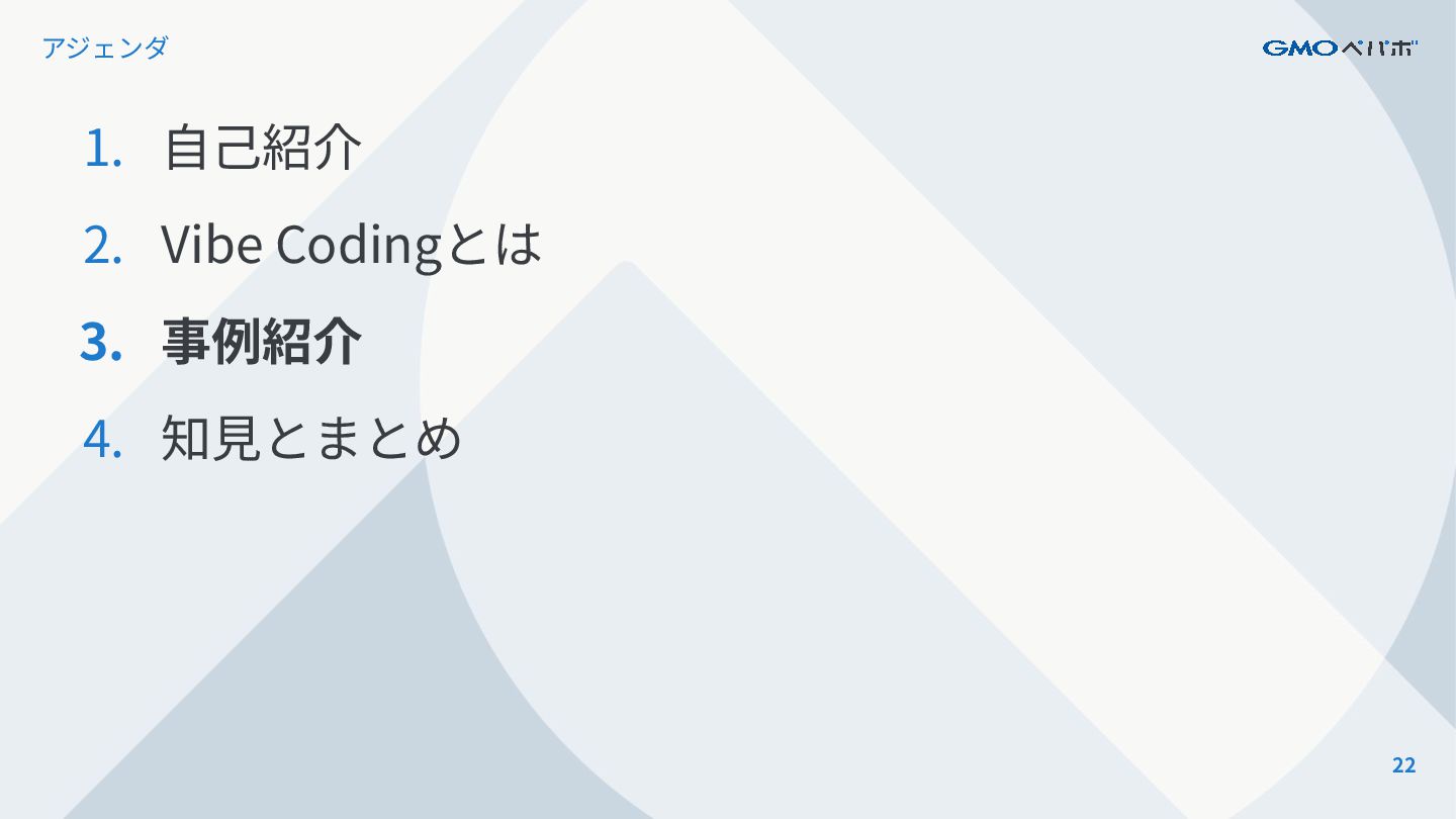 22 アジェンダ 1. ⾃⼰紹介 2. Vibe Codingとは 3. 事例紹介 4.