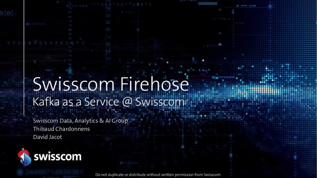 In this talk we will present how we have built our Swisscom Firehose platform which enables teams to use Kafka internally. We will explain how we have tackled these challenges by describing our governance model, our identity & ACLs management, and our self-service capabilities. We will also present how we leverage Kubernetes and how it simplifies our operations.