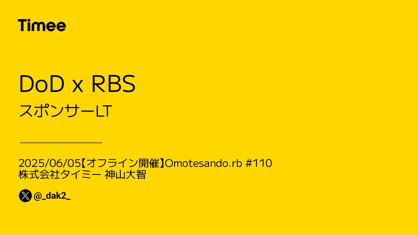 2025/06/05【オフライン開催】Omotesando.rb #110 株式会社タイミー 神山大智 DoD x RBS スポンサーLT @_dak2_