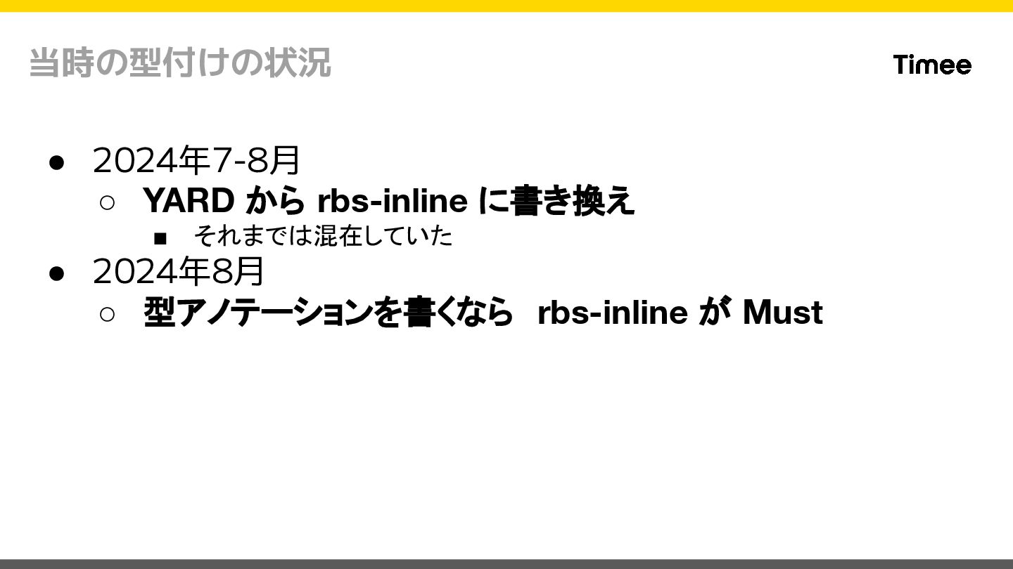 2024年8月 ◦ 型アノテーションを書くなら rbs-inline が Must 当時の型付けの状況