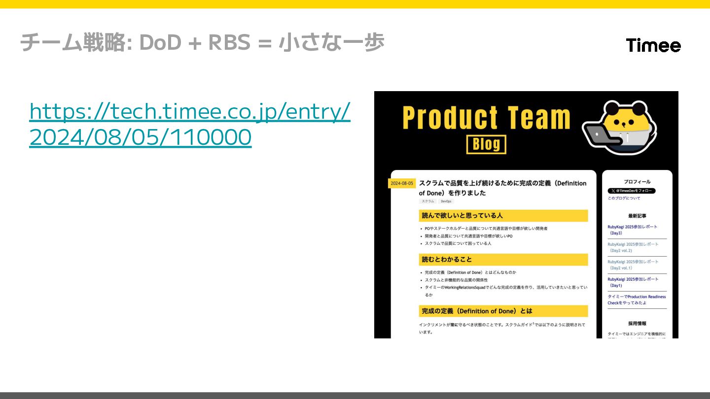 チーム戦略: DoD + RBS = 小さな一歩 https://tech.timee.co.jp/entry/ 2024/08/05/110000