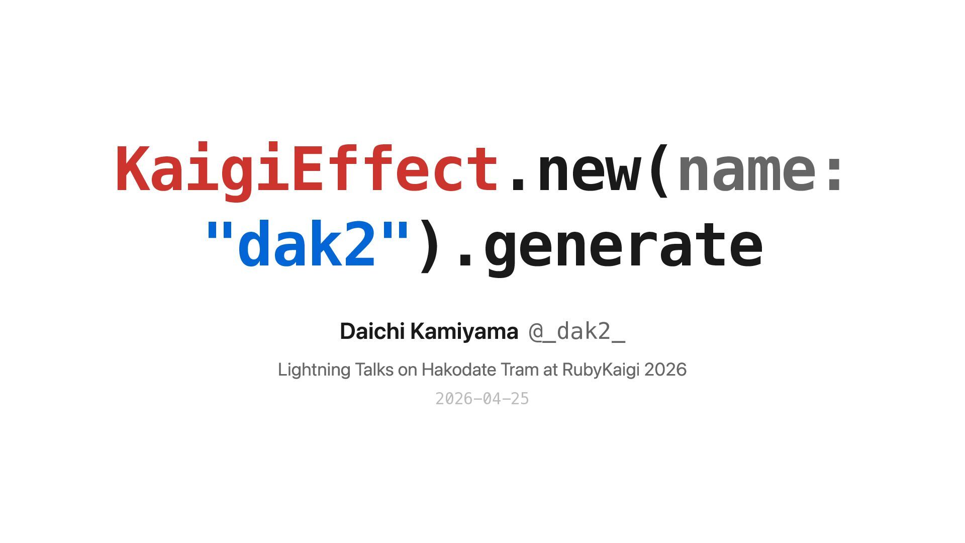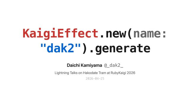 KaigiEffect.new(name: "dak2").generate Daichi Kamiyama @_dak2_ Lightning Talks on Hakodate Tram