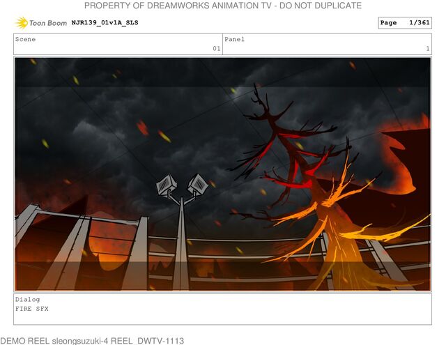 of distant THUNDER CREAKING from falling tree NJR139_01v1A_SLS Page 19/361 PROPERTY OF DREAMWORKS ANIMATION TV - DO NOT DUPLICATE DEMO REEL sleongsuzuki-4 REEL_DWTV-1113