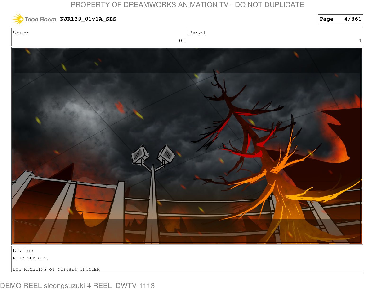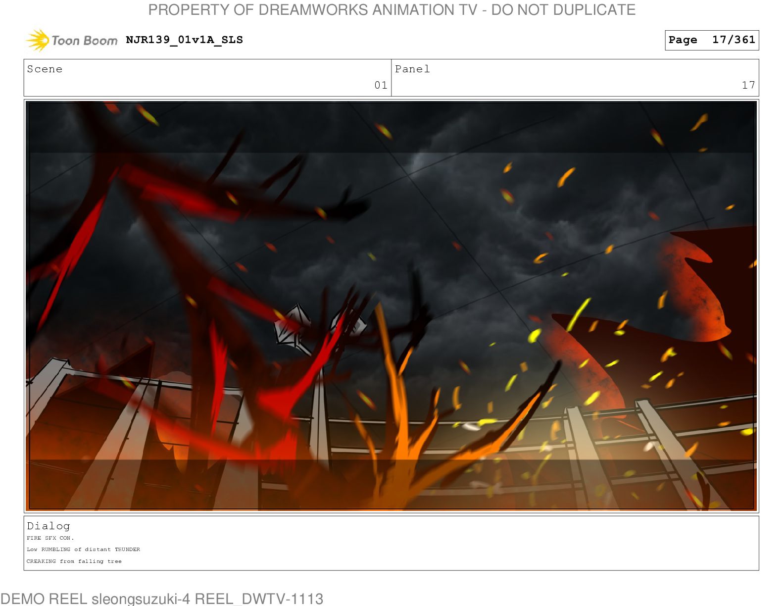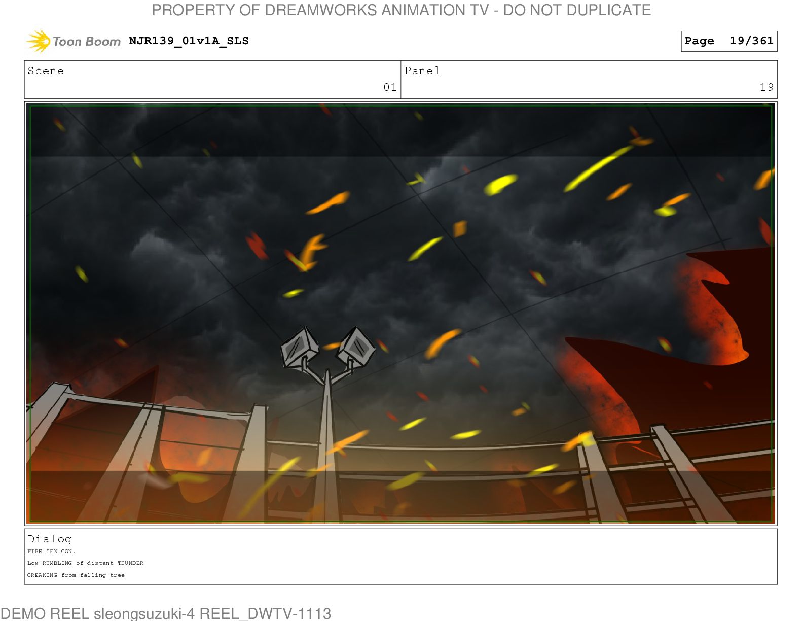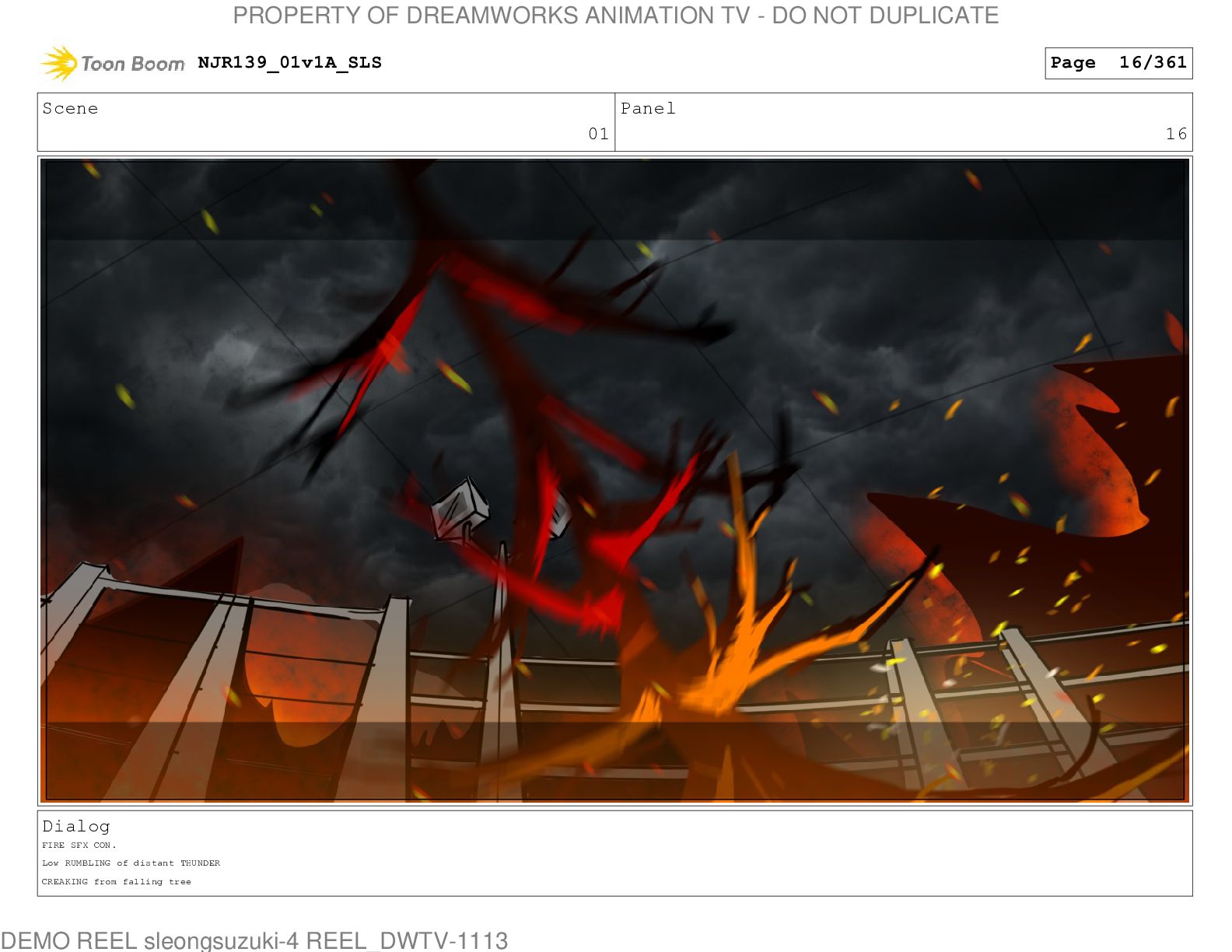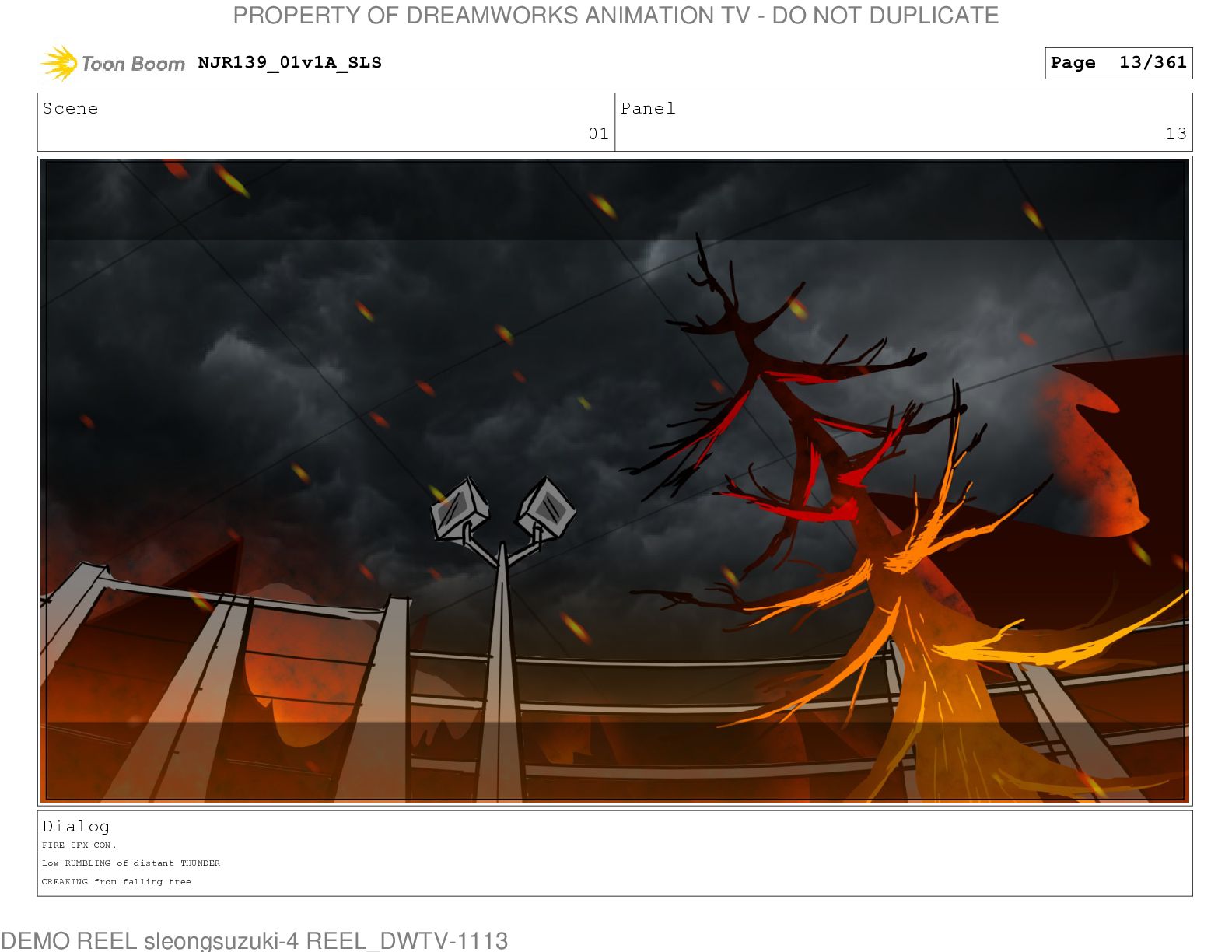 of distant THUNDER CREAKING from falling tree NJR139_01v1A_SLS Page 18/361 PROPERTY OF DREAMWORKS ANIMATION TV - DO NOT DUPLICATE DEMO REEL sleongsuzuki-4 REEL_DWTV-1113
