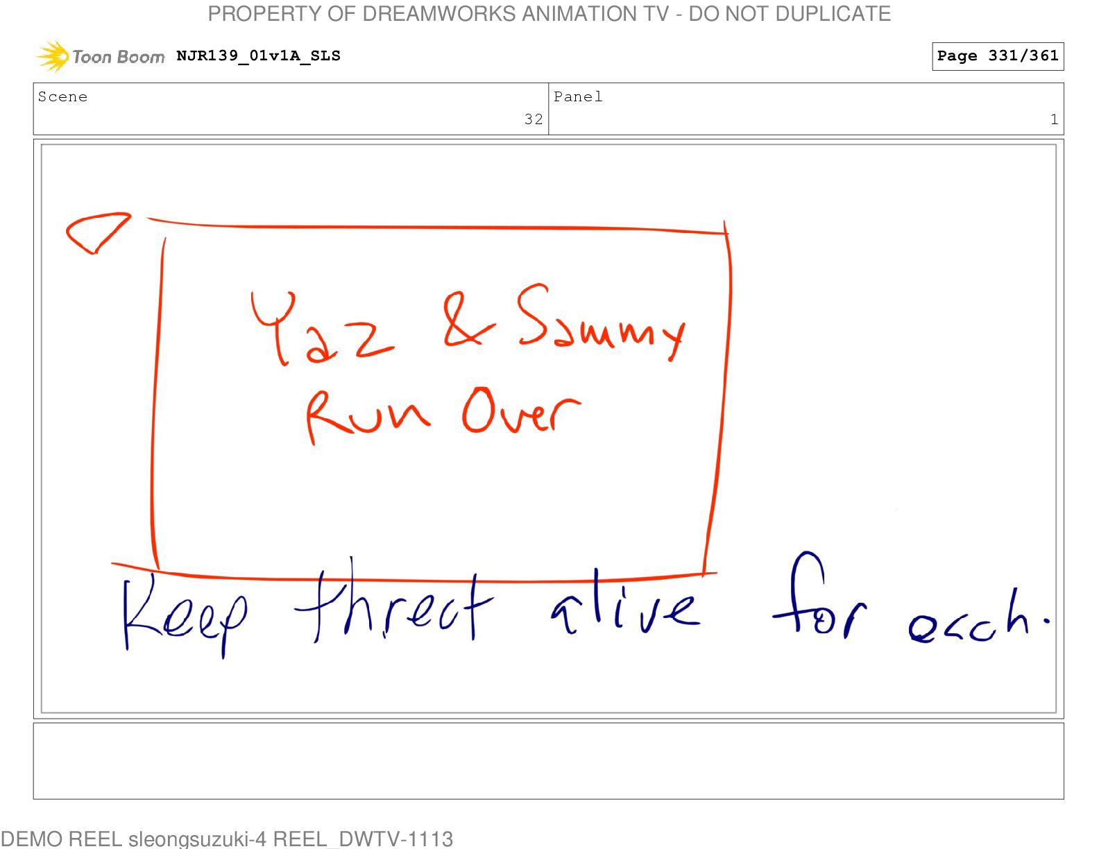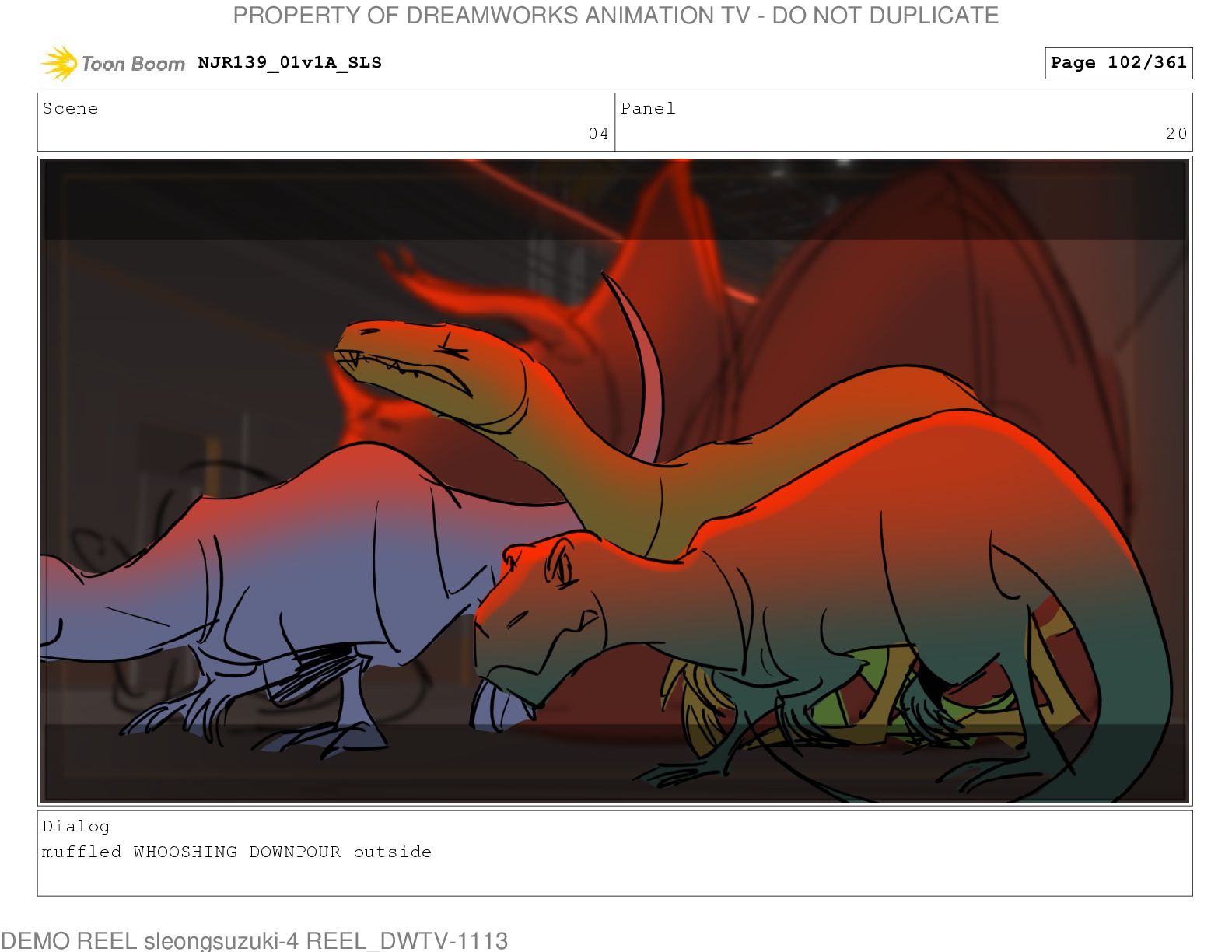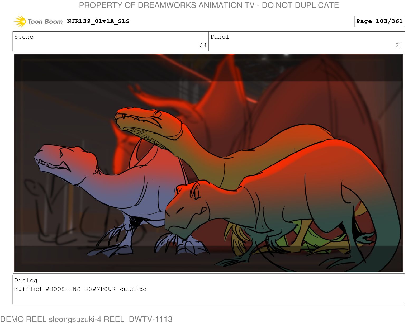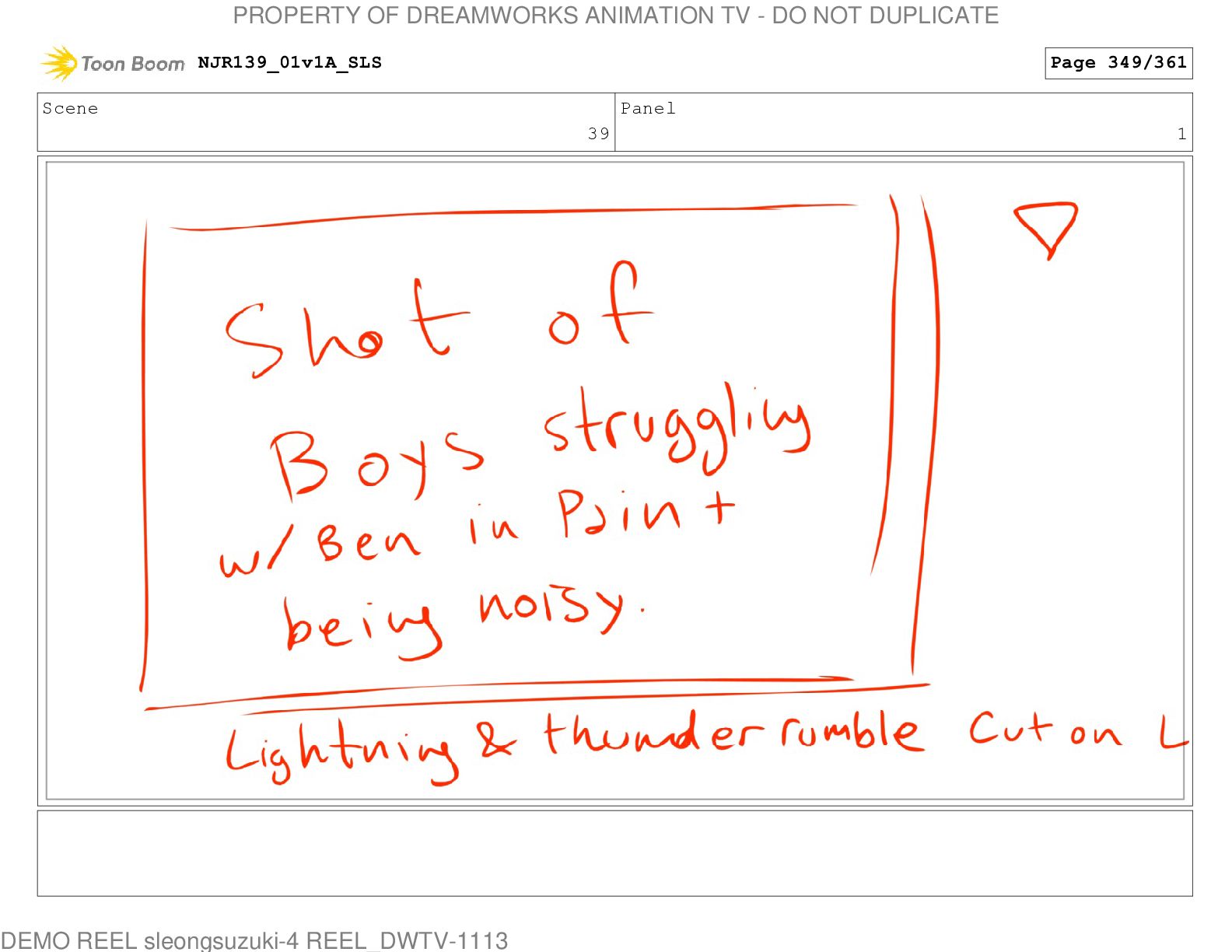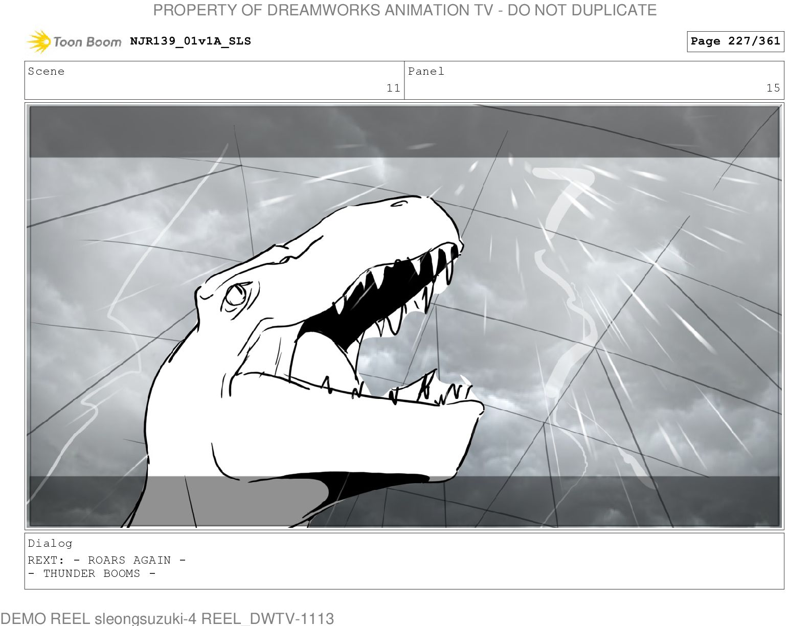 of distant THUNDER CREAKING from falling tree NJR139_01v1A_SLS Page 18/361 PROPERTY OF DREAMWORKS ANIMATION TV - DO NOT DUPLICATE DEMO REEL sleongsuzuki-4 REEL_DWTV-1113