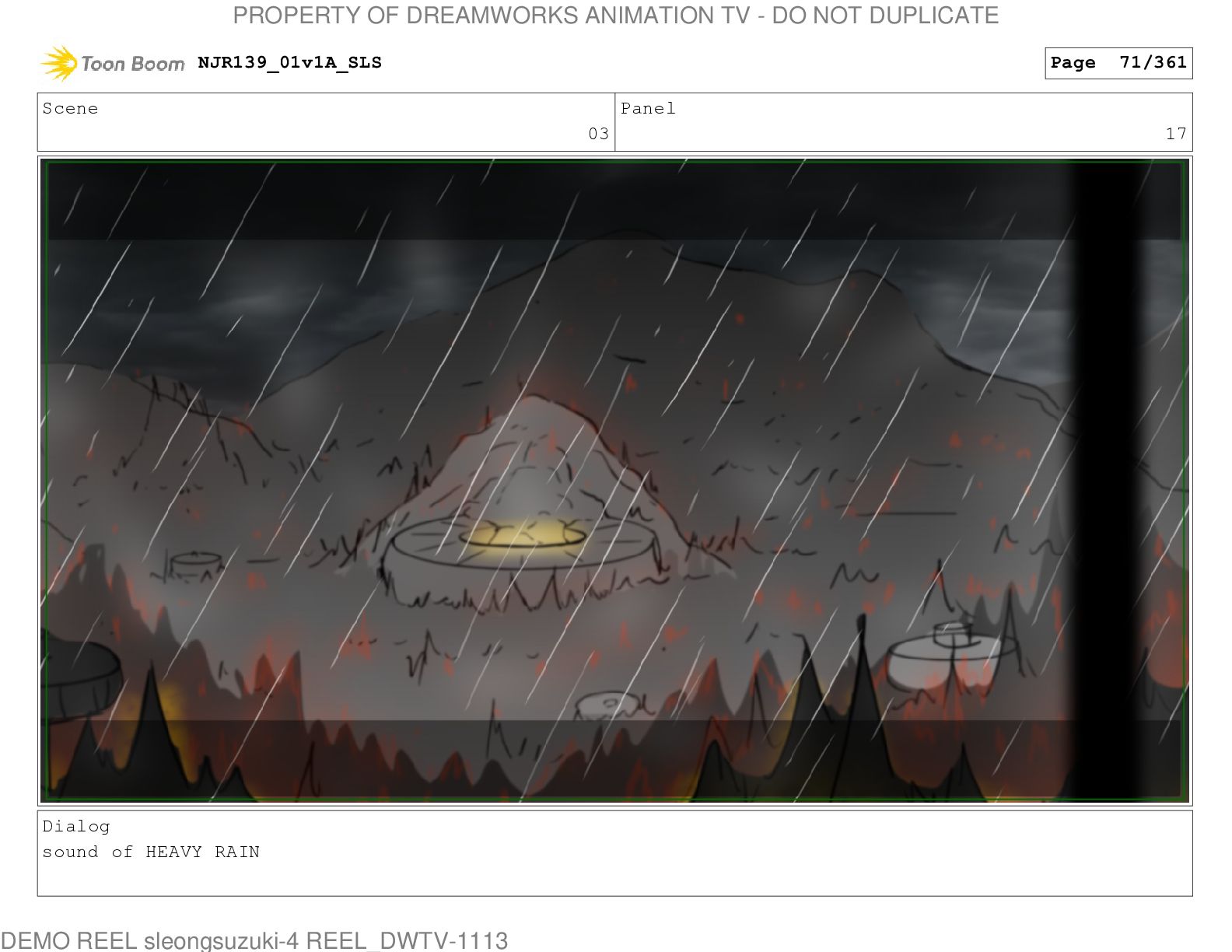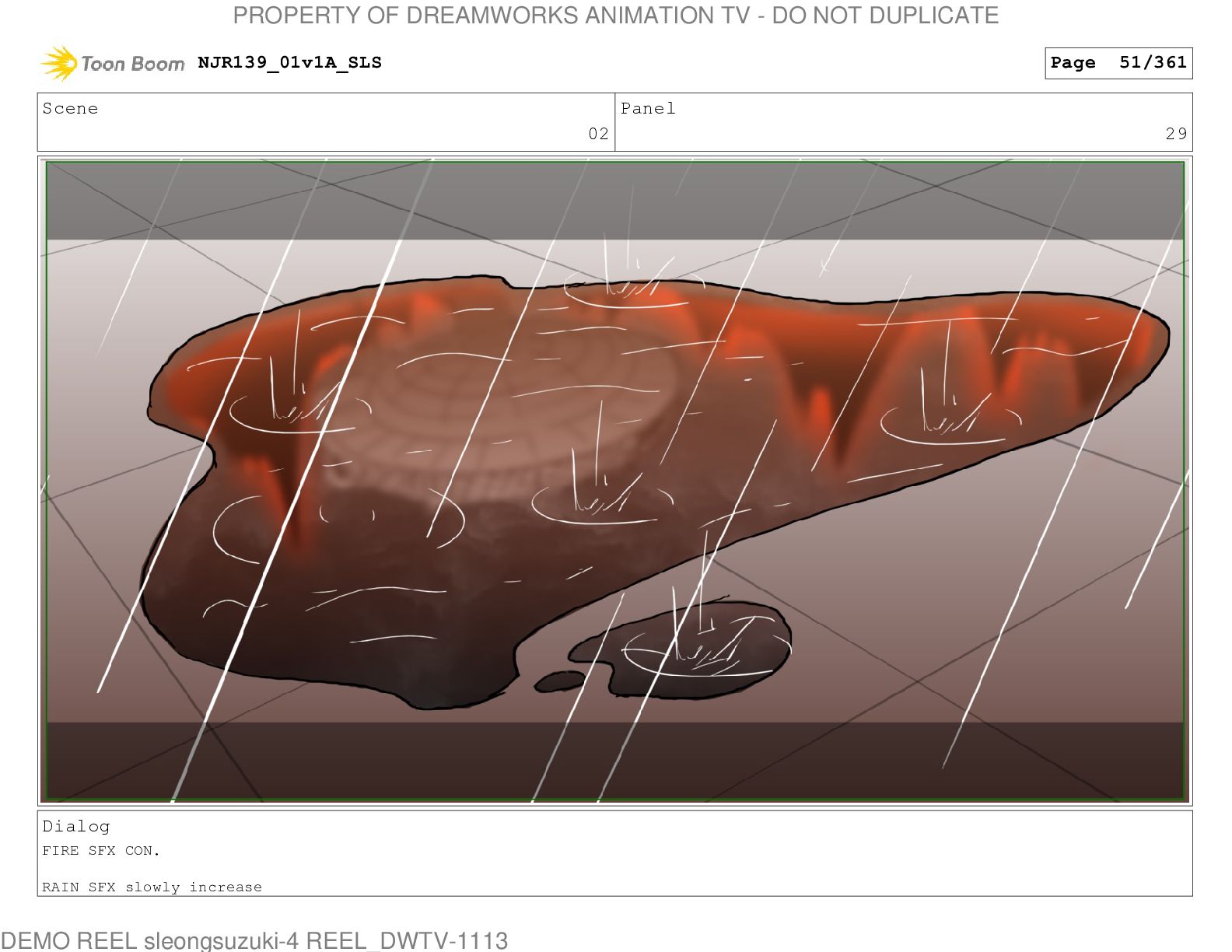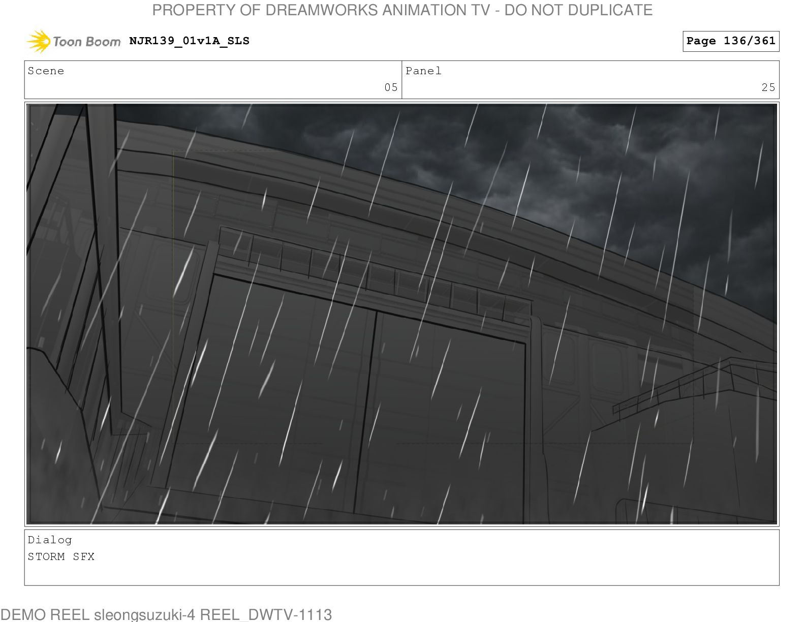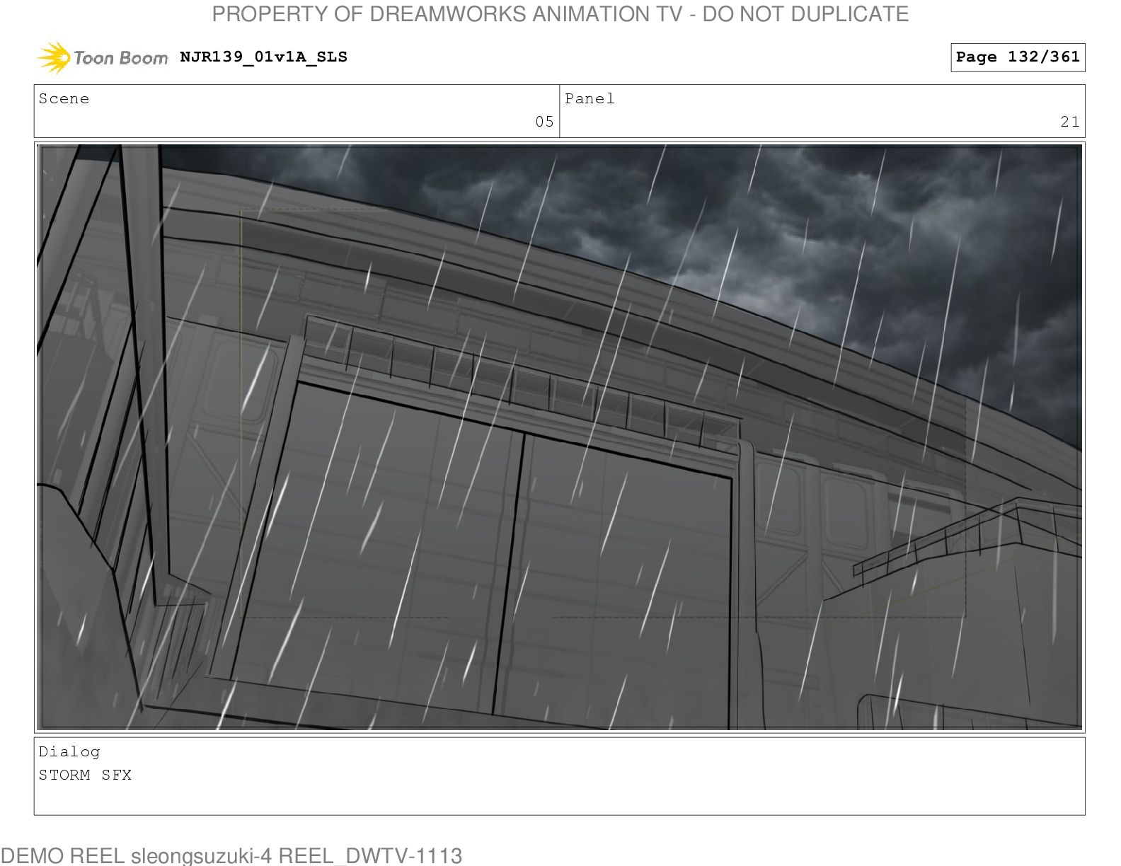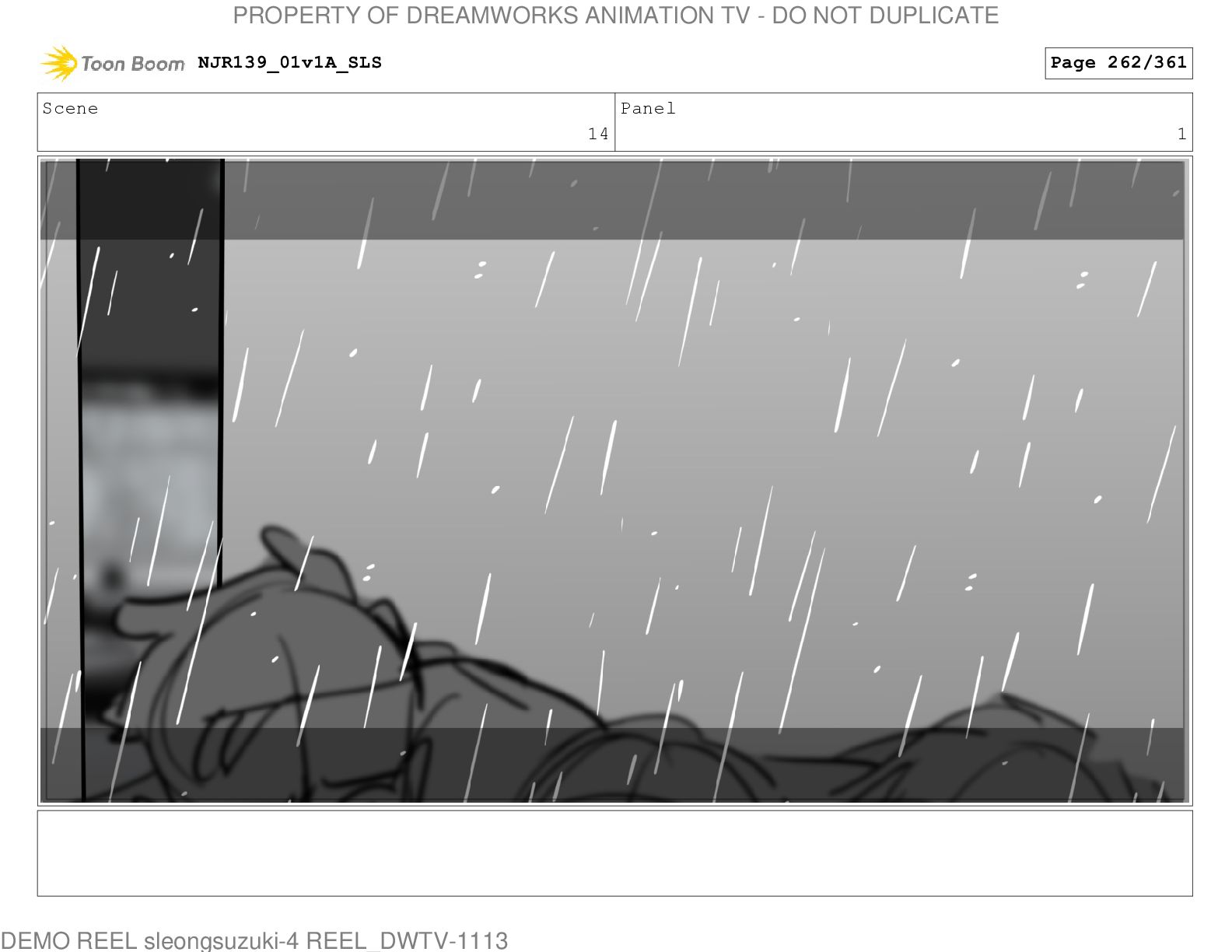 of RAINDROPS hitting the GLASS NJR139_01v1A_SLS Page 72/361 PROPERTY OF DREAMWORKS ANIMATION TV - DO NOT DUPLICATE DEMO REEL sleongsuzuki-4 REEL_DWTV-1113