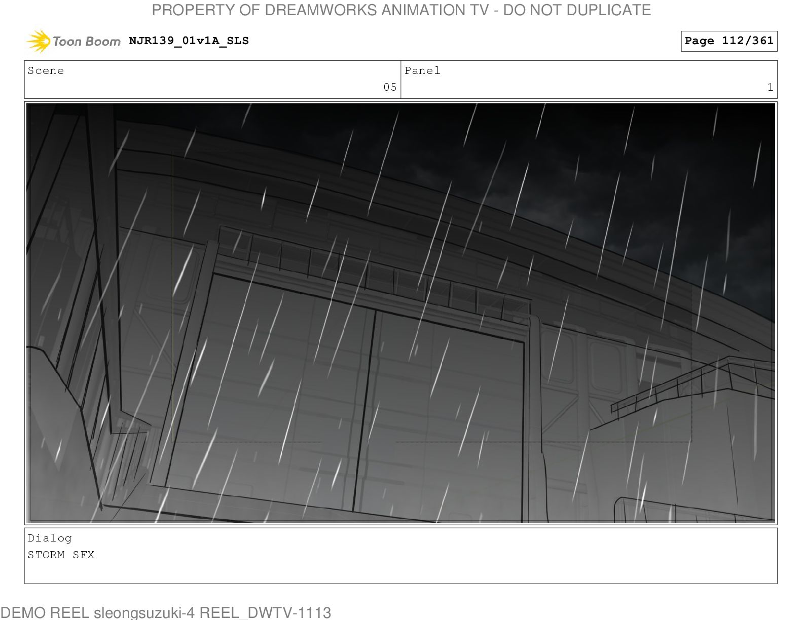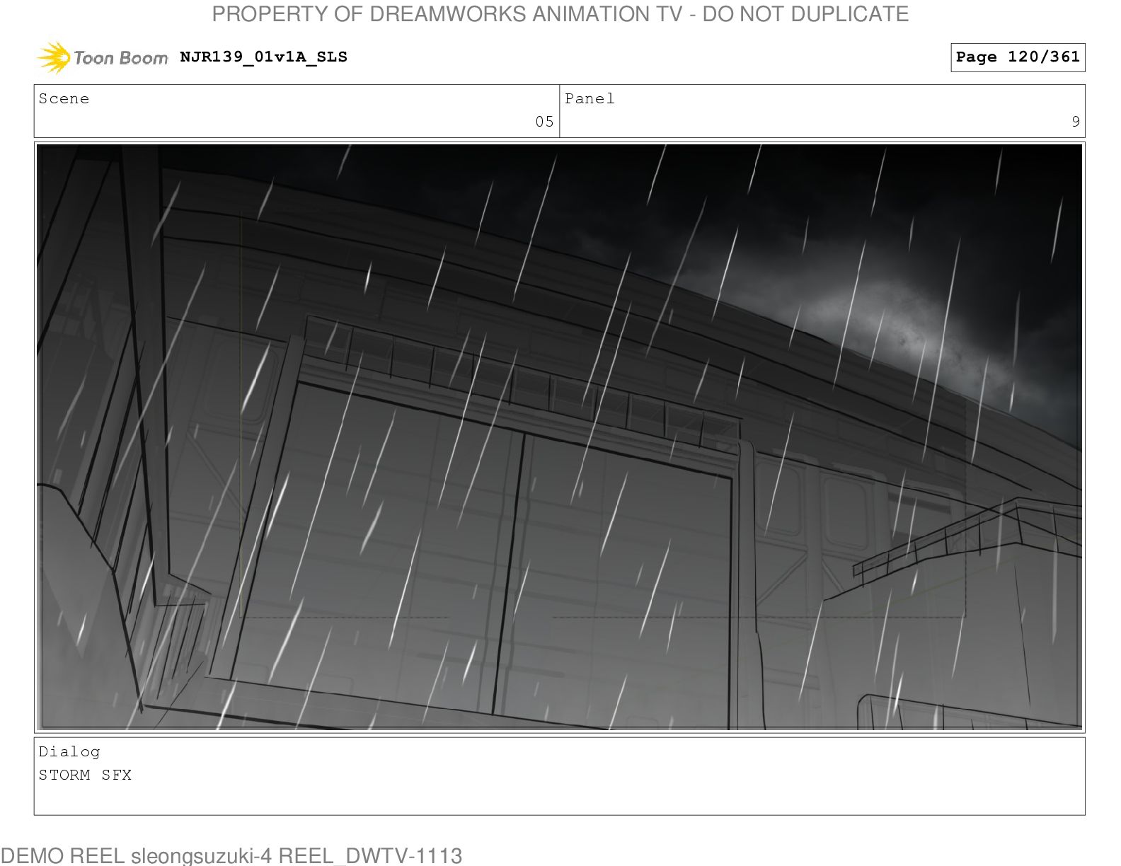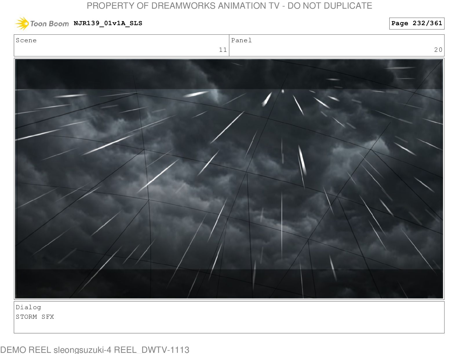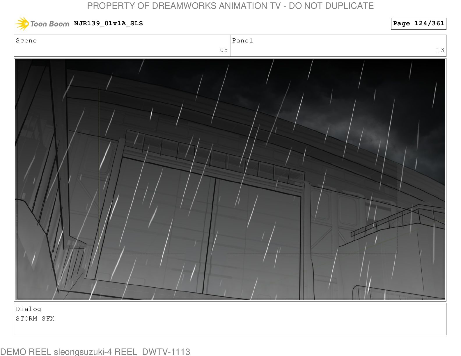 of RAINDROPS hitting the GLASS NJR139_01v1A_SLS Page 72/361 PROPERTY OF DREAMWORKS ANIMATION TV - DO NOT DUPLICATE DEMO REEL sleongsuzuki-4 REEL_DWTV-1113