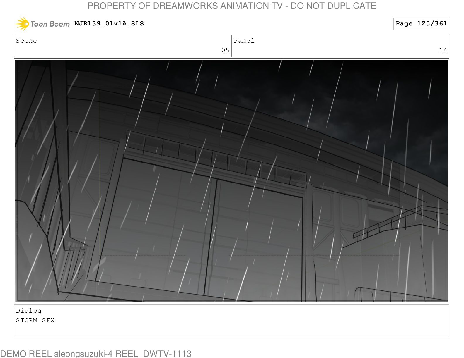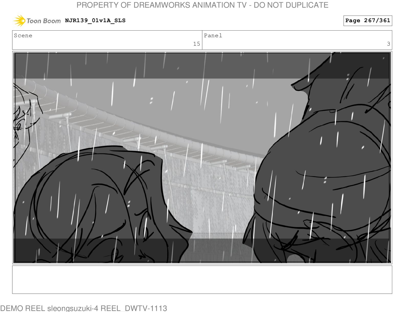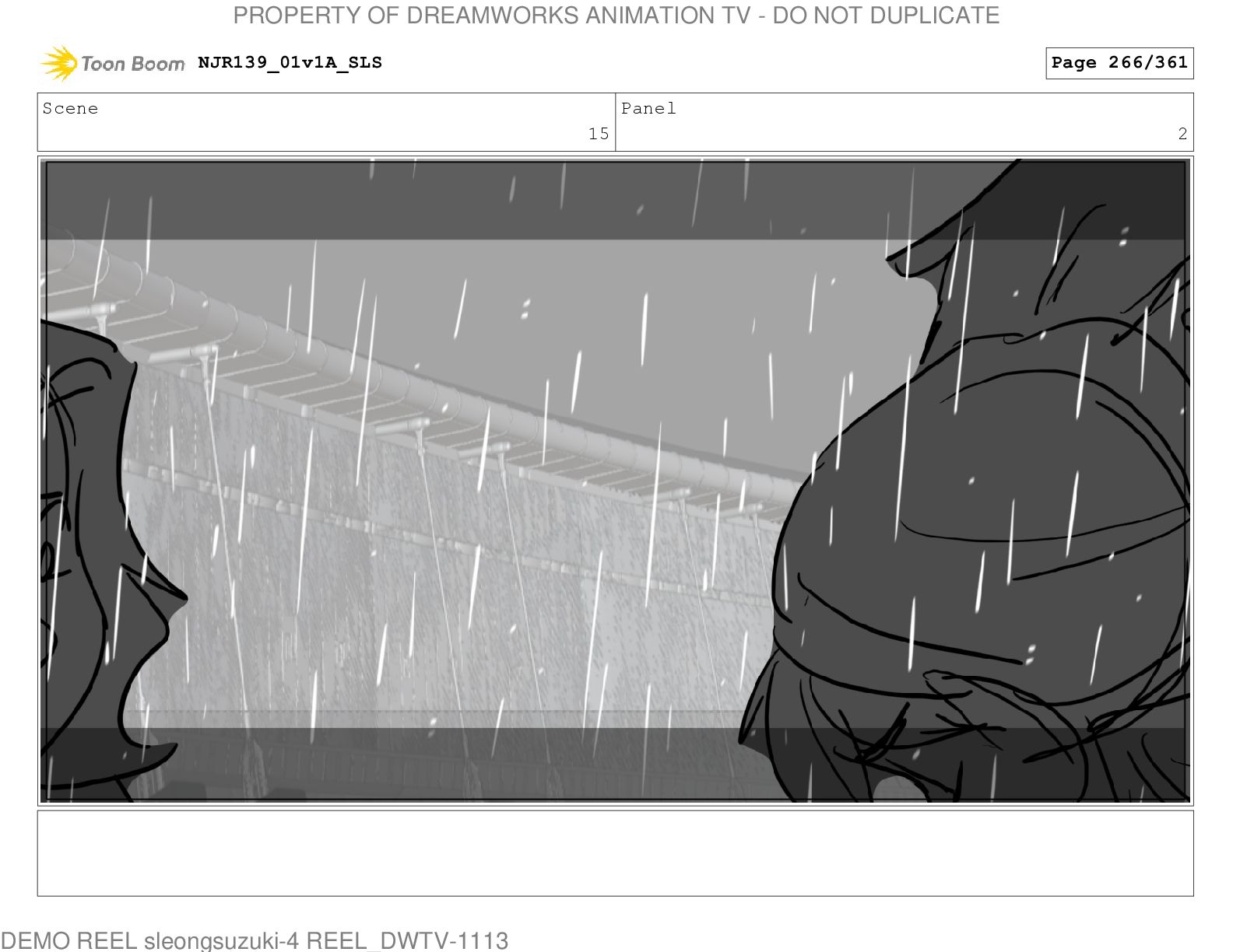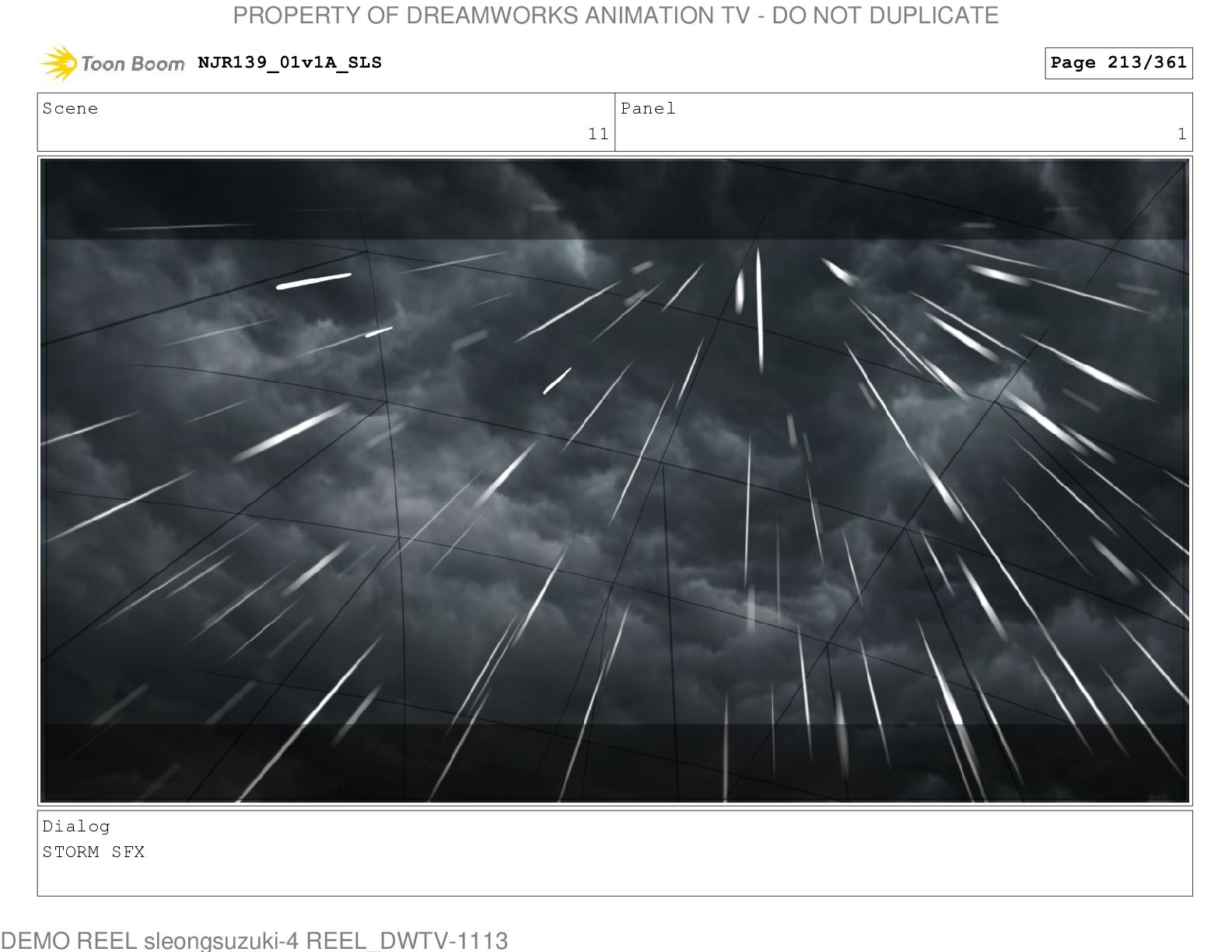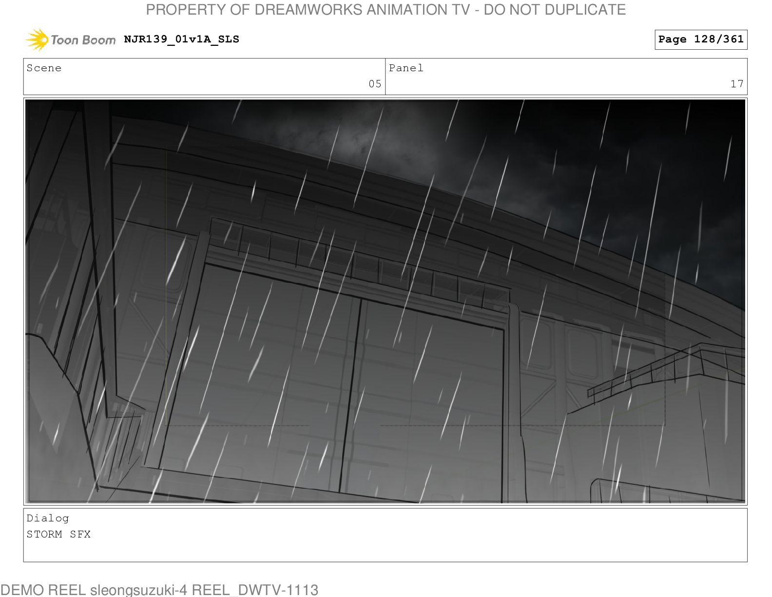 of RAINDROPS hitting the GLASS NJR139_01v1A_SLS Page 72/361 PROPERTY OF DREAMWORKS ANIMATION TV - DO NOT DUPLICATE DEMO REEL sleongsuzuki-4 REEL_DWTV-1113
