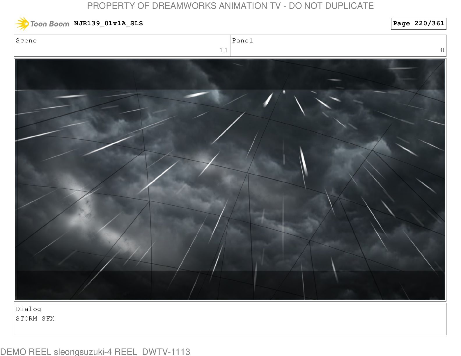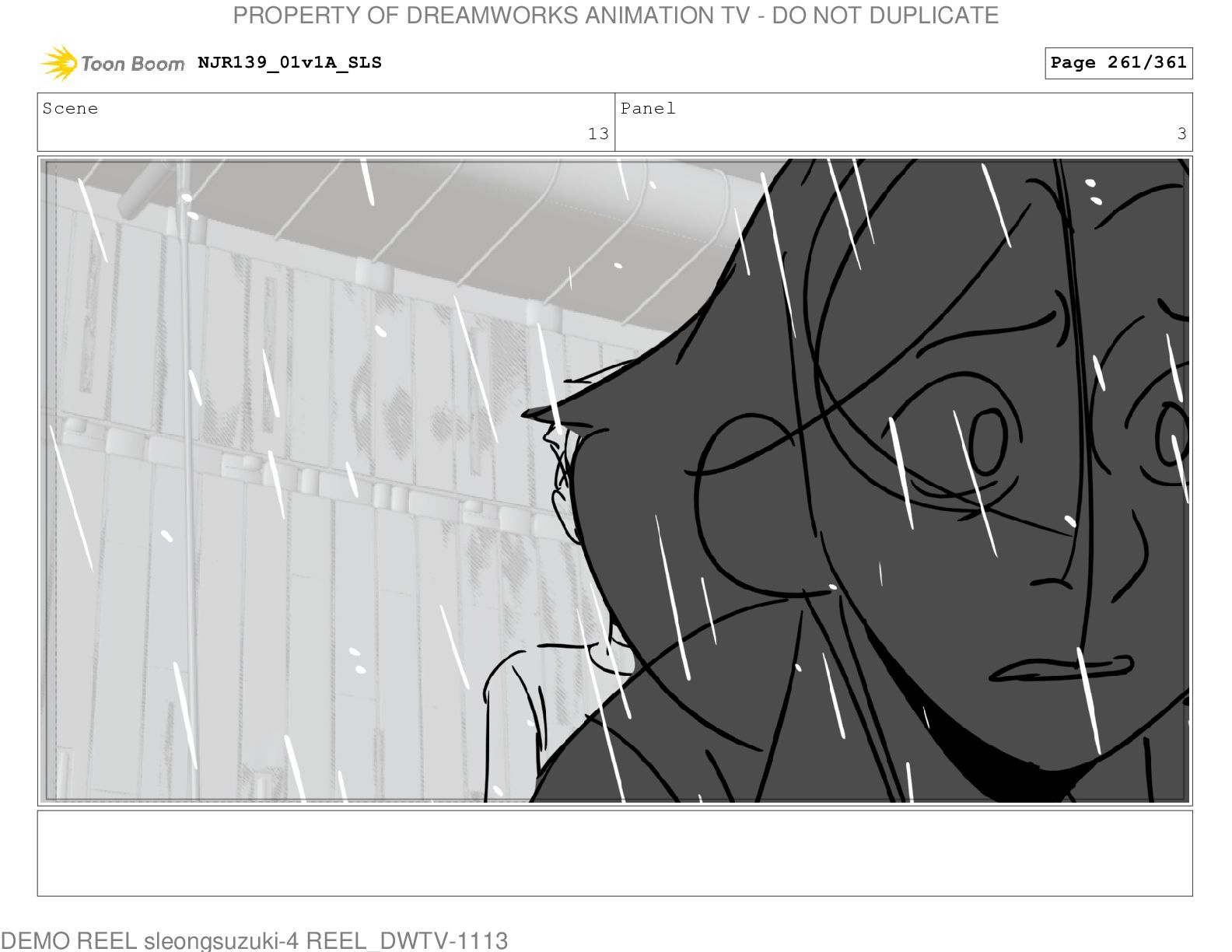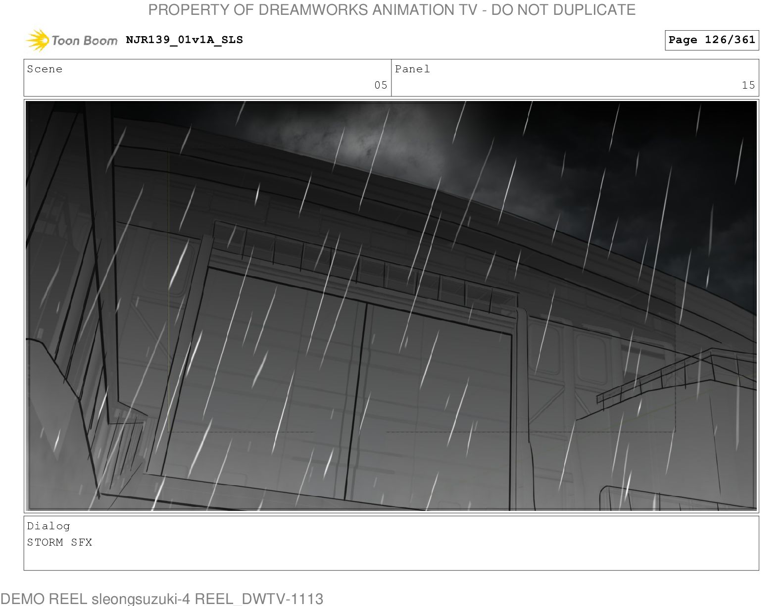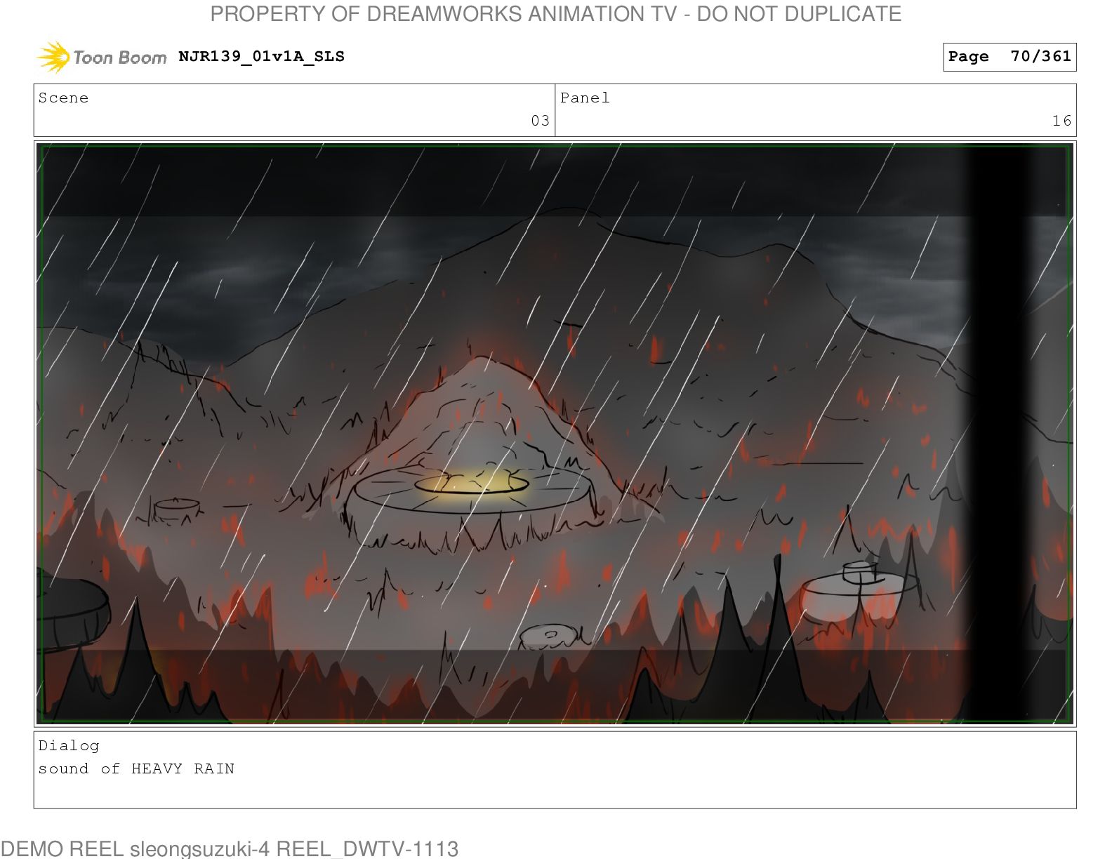 of RAINDROPS hitting the GLASS NJR139_01v1A_SLS Page 72/361 PROPERTY OF DREAMWORKS ANIMATION TV - DO NOT DUPLICATE DEMO REEL sleongsuzuki-4 REEL_DWTV-1113