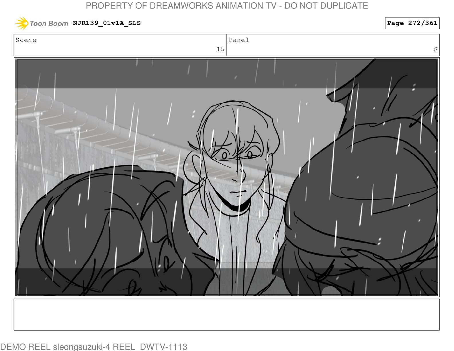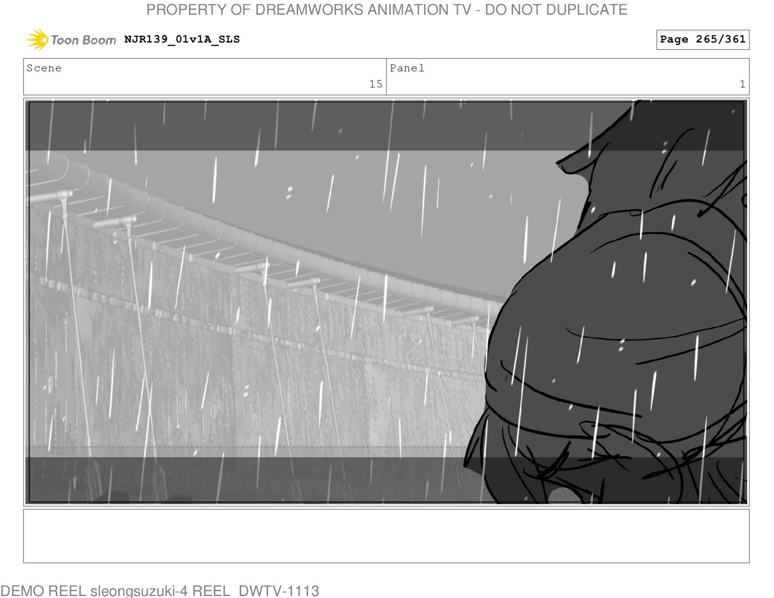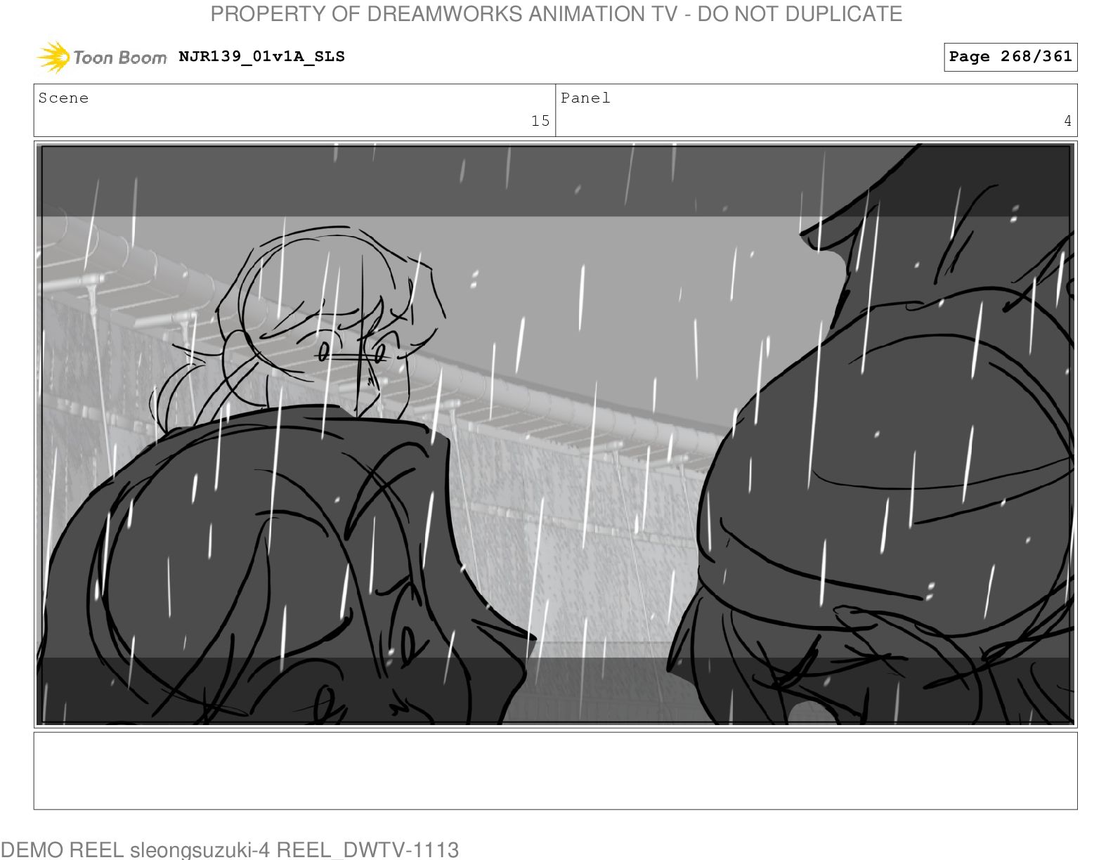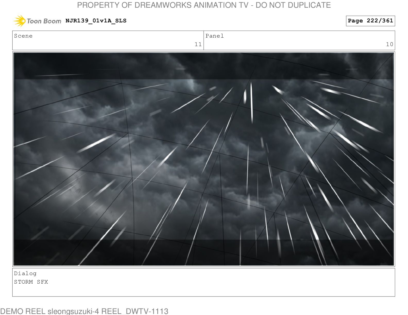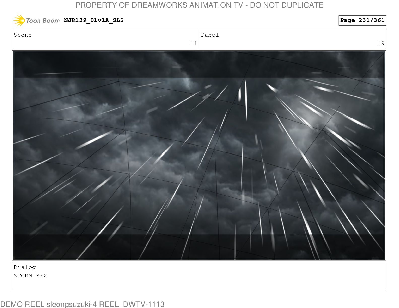 of RAINDROPS hitting the GLASS NJR139_01v1A_SLS Page 72/361 PROPERTY OF DREAMWORKS ANIMATION TV - DO NOT DUPLICATE DEMO REEL sleongsuzuki-4 REEL_DWTV-1113