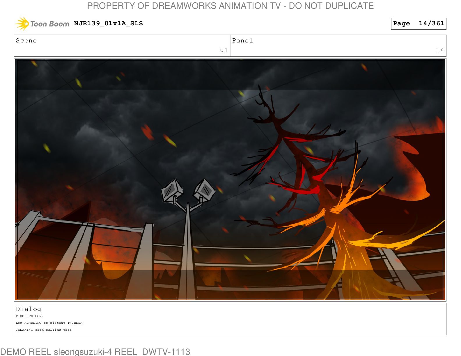of distant THUNDER CREAKING from falling tree NJR139_01v1A_SLS Page 14/361 PROPERTY OF DREAMWORKS ANIMATION TV - DO NOT DUPLICATE DEMO REEL sleongsuzuki-4 REEL_DWTV-1113