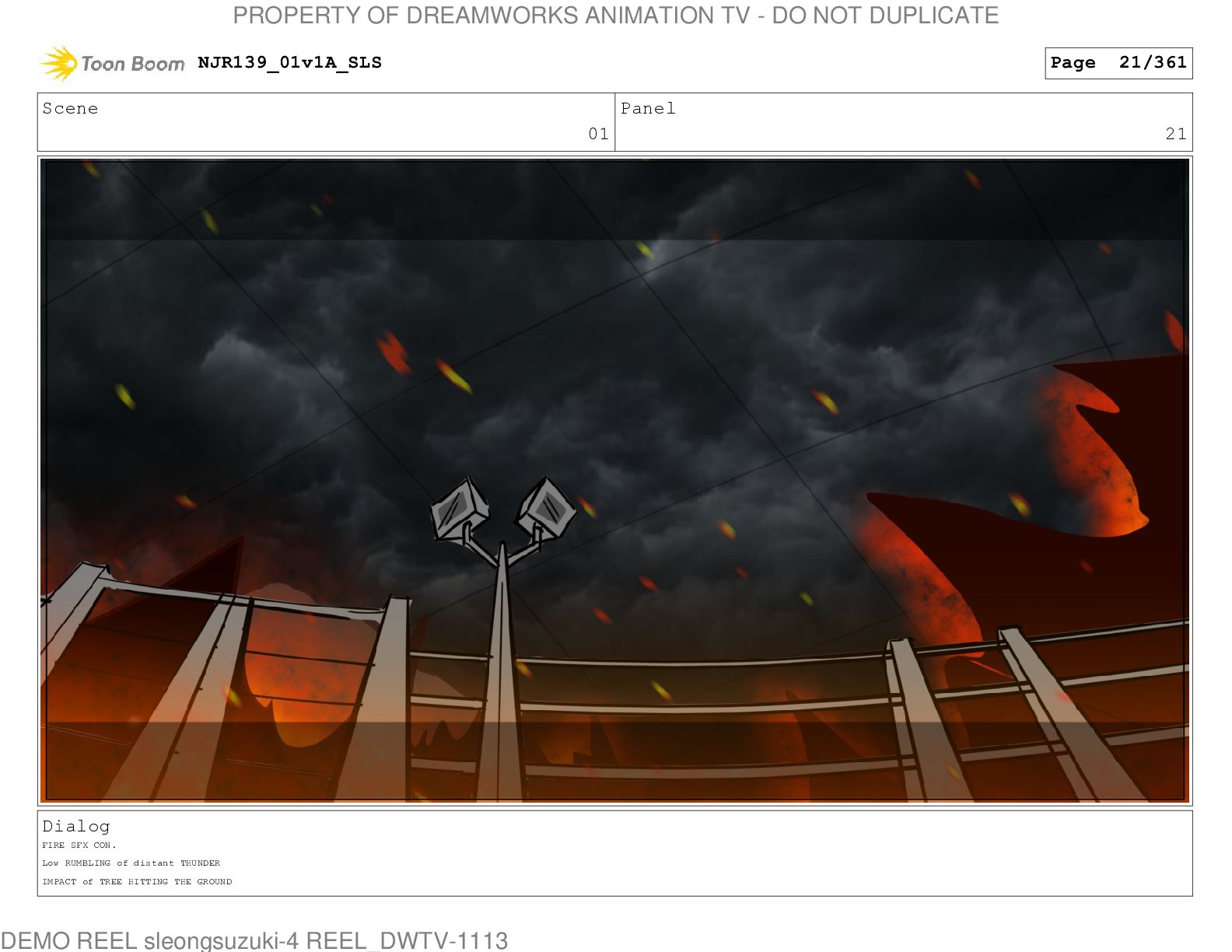 of distant THUNDER IMPACT of TREE HITTING THE GROUND NJR139_01v1A_SLS Page 21/361 PROPERTY OF DREAMWORKS ANIMATION TV - DO NOT DUPLICATE DEMO REEL sleongsuzuki-4 REEL_DWTV-1113
