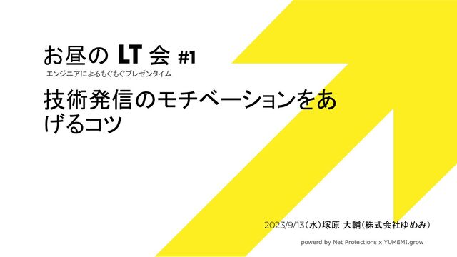 お昼の LT 会 #1 技術発信のモチベーションをあ げるコツ 2023/9/13(水)塚原 大輔(株式会社ゆめみ) powerd by