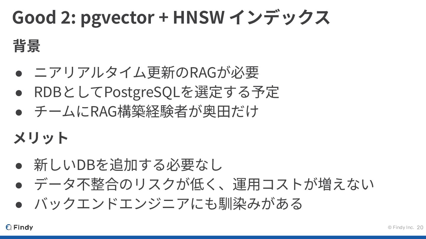 © Findy Inc. Good 2: pgvector + HNSW インデックス 20