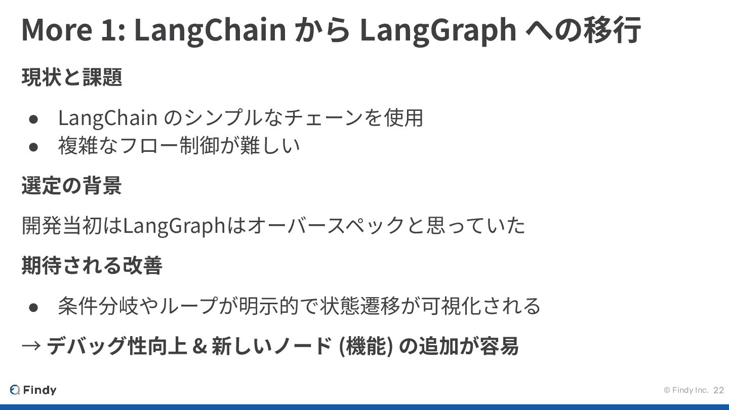 © Findy Inc. More 1: LangChain から LangGraph への移⾏ 22