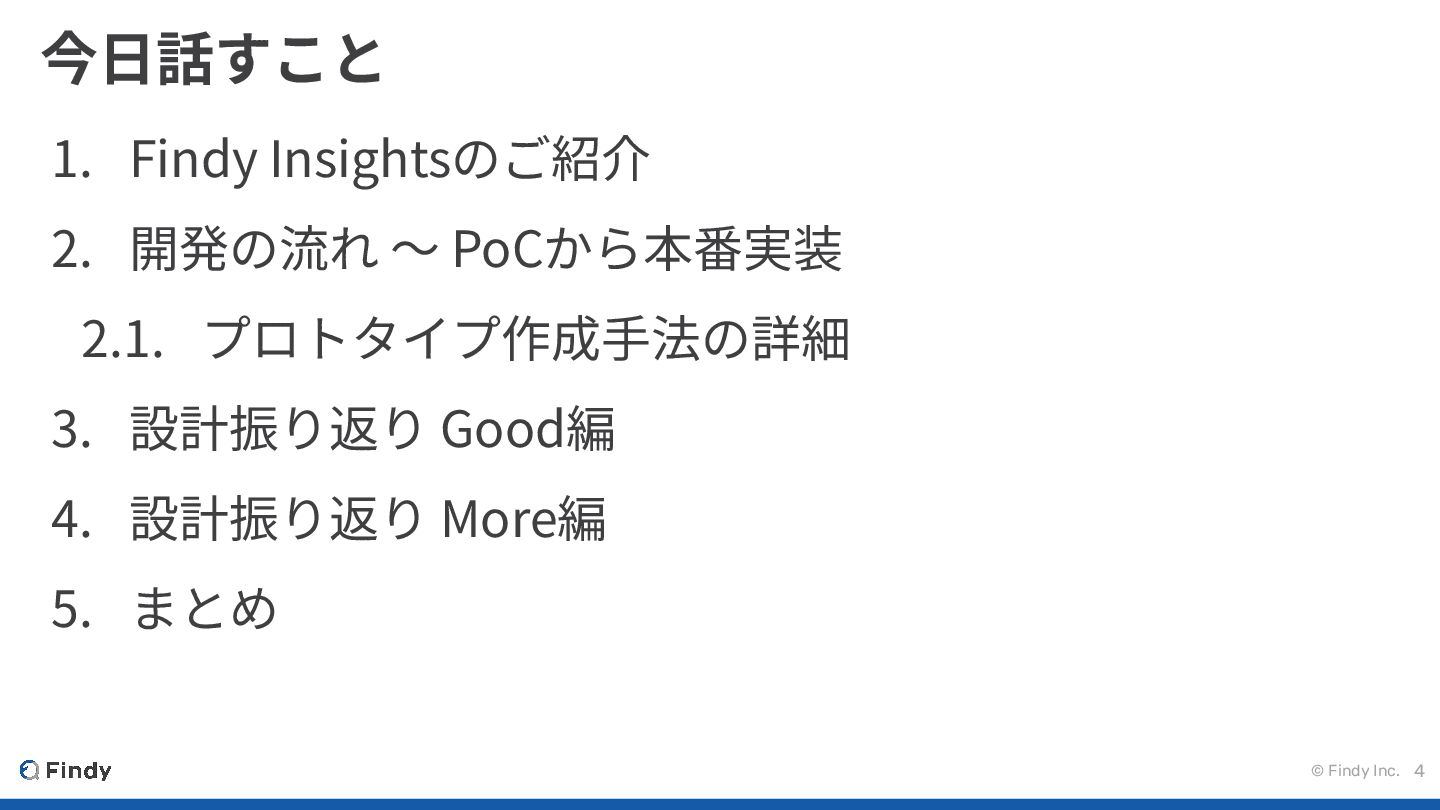 〜 PoCから本番実装 2.1. プロトタイプ作成⼿法の詳細 3. 設計振り返り Good編 4. 設計振り返り More編 5. まとめ