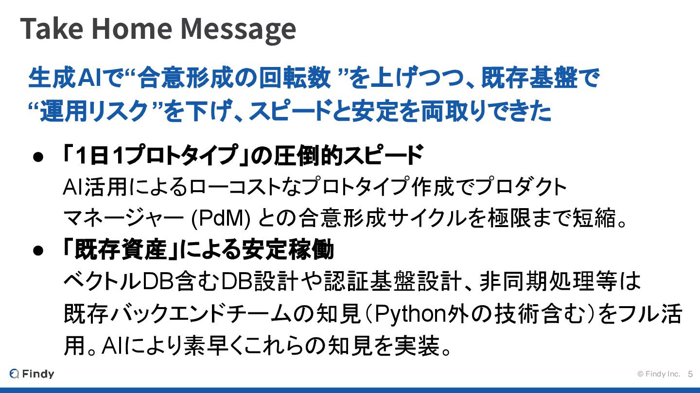 © Findy Inc. 5 Take Home Message 生成AIで“合意形成の回転数 ”を上げつつ、既存基盤で “運用リスク