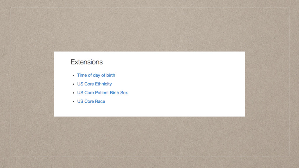gender • Must Support: birthDate, race, ethnicity, birth sex, communication.language • race and ethnicity: V3 value sets, based on CDC race and ethnicity • birth sex: V3 administrative gender