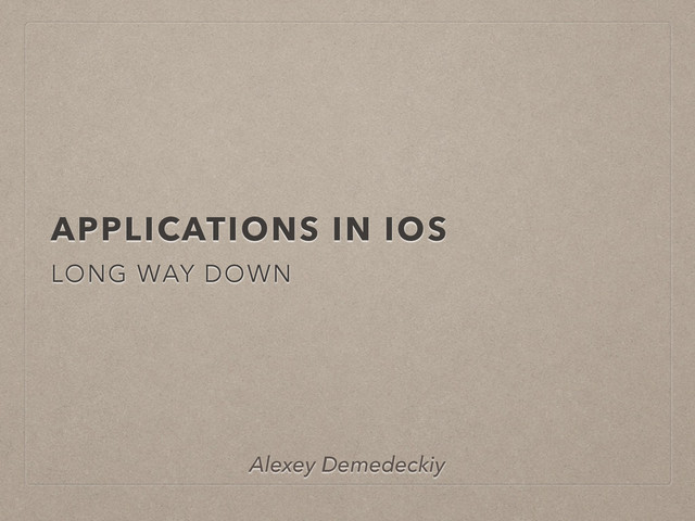 APPLICATIONS IN IOS LONG WAY DOWN Alexey Demedeckiy