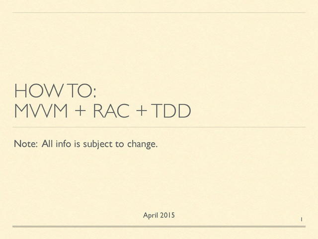 LINKS http://cocoasamurai.blogspot.ca/2013/03/basic-mvvm-with- reactivecocoa.html https://speakerdeck.com/jspahrsummers/code-reuse-with-mvvm https://speakerdeck.com/dalog/m-v-vm-basics http://componentkit.org/ http://jlongster.com/Removing-User-Interface-Complexity,-or- Why-React-is-Awesome