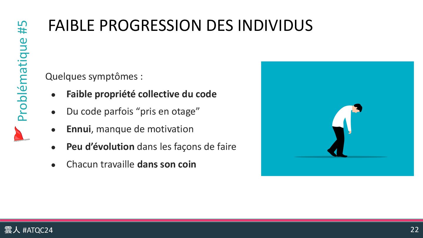 Dans ce contexte 100% télétravail, les équipes risquent de perdre les échanges informels et l'entraide spontanée qui favorisent la progression collective et la résolution collaborative des problèmes. L'isolement des individus peut entraîner une atrophie de la dynamique de groupe, une diminution des échanges naturels et des partages de savoirs, impactant à long terme l'implication des individus et la qualité du produit.