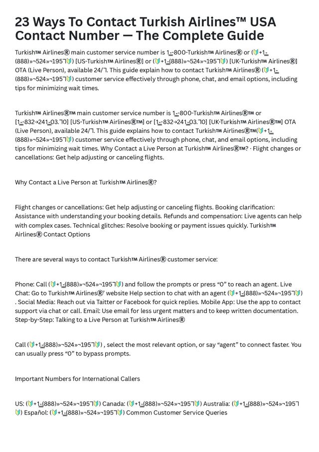 Whether it's a booking, refund, or flight issue, Turkish™️ Airlines®️ support team is reachable 24/7 at ☎️ 1⨽»88.8⨽»524⨽»1957 . Bookmark this page for the fastest solutions to your travel problems.
