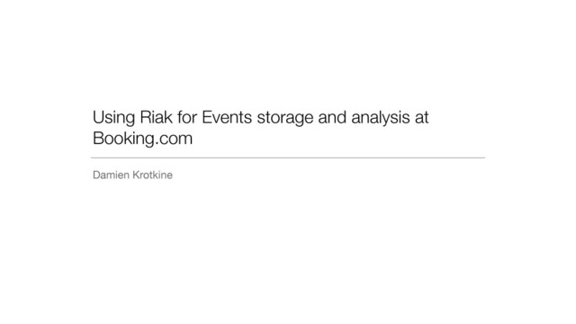 At Booking.com, we have a constant flow of events coming from various applications and internal subsystems. This critical data needs to be stored for real-time, medium and long term analysis. Events are schema-less, making it difficult to use standard analysis tools.This presentation will explain how we built a real time storage and analysis solution based on Riak. The talk will cover: data aggregation and serialization, Riak configuration, solutions for lowering the network usage, and finally, how Riak's advanced features are used to perform real-time data crunching on the cluster nodes