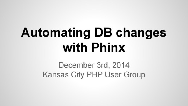 We all have our ways to deploy our software--some automatic, some manual. But do you still get that nervous feeling when it's time to upgrade production? It may be time to script your deployment from end to end. Your app probably isn't just source code though. If your change includes database updates, do you have what you need to update it automatically? You do now! It's time to meet Phinx.